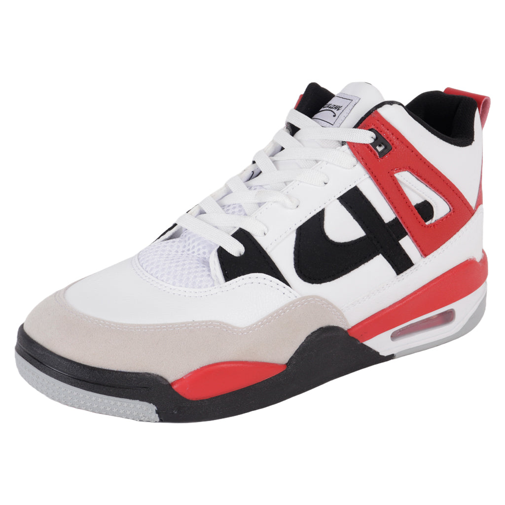 Para un look urbano que nunca pasa de moda, nuestros tenis casuales para hombre son la opción ideal. Con un diseño elegante y materiales resistentes, son perfectos para cualquier ocasión casual. ¡Compra fácil y rápido en Zapatería Fratello y asegura el calzado que complementa tu estilo relajado! Panam tenis casual de bota para hombre, en color blanco con tonos en rojo y negro, modelo elaborado en piel sintética, tipo de cierre con agujetas en tono blancoo, suela sintética, cuenta con suela plana color blanco y negro, con un alto de 4 cm forro textil, tallas disponibles 25 al 29 sin incluir medias tallas, modelo con horma normal (talla fiel), te sugerimos adquirir talla habitual. Haz que cada paso cuente con Zapatería Fratello, calzado 100% mexicano. Ponte zapatos, no límites. Compra los tuyos ahora.