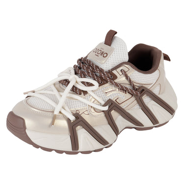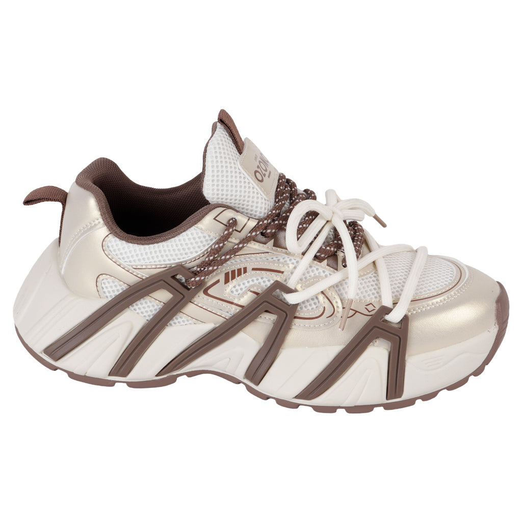 Haz una declaración de estilo con nuestros tenis casuales Fratello, diseñados para la mujer moderna que busca comodidad y moda en cada paso. Con un diseño elegante y detalles cuidadosamente elaborados, estos tenis son la opción perfecta para cualquier ocasión casual. ¡Compra en línea y recibe en la comodidad de tu hogar! Capa de Ozono tenis urbano para mujer, en color oro, modelo elaborado en material sintético, cuenta con diseño urbano, tipo de cierre con agujetas en tono blanco, suela sintética con diseño estilo chunky, con un alto de 4 c.m., forro textil, tallas disponibles 22 al 26 no incluye medias tallas, modelo con horma normal (talla fiel), te sugerimos adquirir talla habitual. Haz que cada paso cuente con Zapatería Fratello, calzado 100% mexicano. Ponte zapatos, no límites. Compra los tuyos ahora.