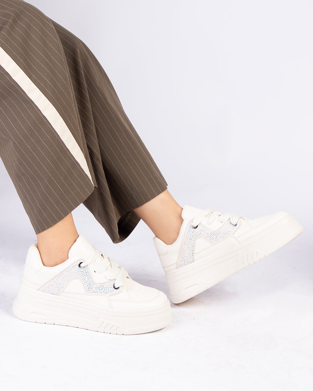 La frescura de lo casual está en tus pies. Estos tenis Fratello están diseñados para caminar con estilo sin complicaciones. Con líneas limpias y colores versátiles, se convierten en ese básico que siempre funciona. ¡Haz clic y hazlos parte de tu rutina! Fratello tenis casual para mujer, en color late, modelo elaborado en material sintético, cuenta con aplicación de pedrería fina, tipo de cierre con agujetas al tono suela sintética ranil, cuenta con suela de plataforma, con un alto de 5 cm forro textil, tallas disponibles 23/26 incluyendo medias tallas, modelo con horma normal (talla fiel), te sugerimos adquirir talla habitual. Haz que cada paso cuente con Zapatería Fratello, calzado 100% mexicano. Ponte zapatos, no límites. Compra los tuyos ahora.