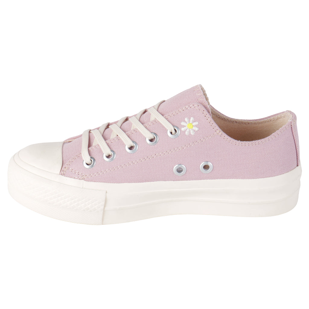 Versátiles y modernos, los tenis casuales Fratello se convierten en tus favoritos desde el primer uso. Están hechos para recorrer la ciudad con estilo. Combínalos con lo que quieras y luce increíble todos los días. ¡Compra ya tu par perfecto! Fratello tenis casuales para mujer, modelo en color rosa, elaborado en material lona, tipo de ajuste con agujetas color late, con detalle de bordado de margarita, suela sintética antideslizante con un alto de 4 cm, forro textil, tallas disponibles 22/26 incluyendo medias tallas, modelo con horma normal, adquirir talla habitual. Haz que cada paso cuente con Zapatería Fratello, calzado 100% mexicano. Ponte zapatos, no límites. Compra los tuyos ahora.