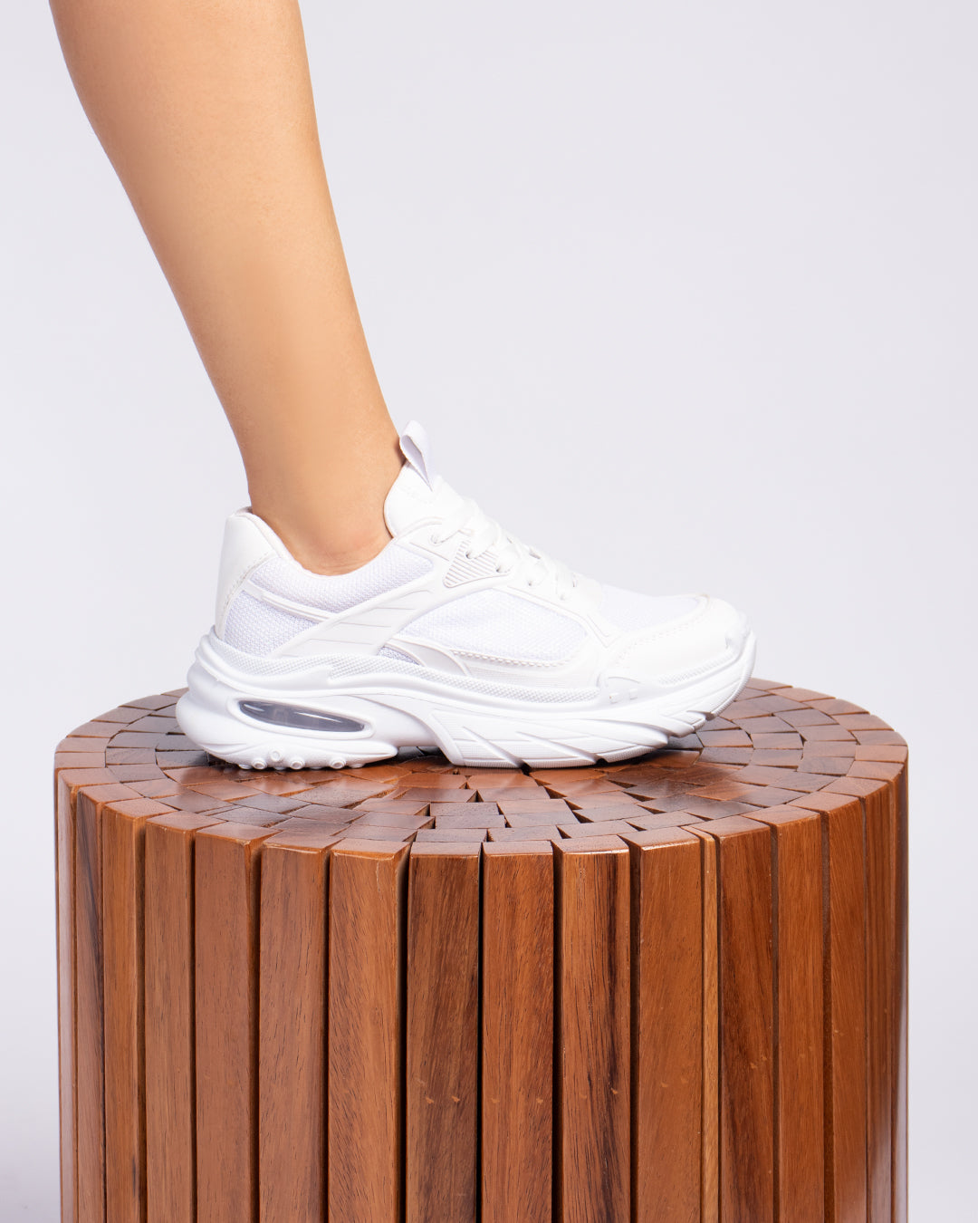 Perfectos para tu rutina diaria. Los tenis deportivos Fratello te permiten moverte con soltura y estilo. Ligeros, modernos y funcionales, están listos para acompañarte en cada paso. ¡Agrégalos a tu colección deportiva! Fratello tenis deportivos para mujer, modelo en color blanco, elaborado en material textil, tipo de ajuste con agujetas al tono, suela sintética antideslizante con un alto de 5 cm, suela con burbuja de aire, forro textil, tallas disponibles 23/26 incluyendo medias tallas, modelo con horma normal, adquirir talla habitual. Haz que cada paso cuente con Zapatería Fratello, calzado 100% mexicano. Ponte zapatos, no límites. Compra los tuyos ahora.