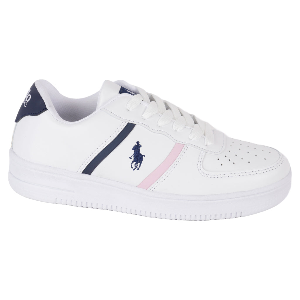 Haz una declaración de estilo con nuestros tenis casuales Fratello, diseñados para la mujer moderna que busca comodidad y moda en cada paso. Con un diseño elegante y detalles cuidadosamente elaborados, estos tenis son la opción perfecta para cualquier ocasión casual. ¡Compra en línea y recibe en la comodidad de tu hogar! Polo HPC tenis casual para mujer, en color blanco con tonos color azul marino y rosa, modelo elaborado en material piel sintética, tipo de ajuste con agujetas, en tono blanco, suela sintética cuenta con suela plana, con un alto de 3 cm forro textil, tallas disponibles 22 al 26 incluyendo medias tallas, modelo con horma normal (talla fiel), te sugerimos adquirir talla habitual. Haz que cada paso cuente con Zapatería Fratello, calzado 100% mexicano. Ponte zapatos, no límites. Compra los tuyos ahora.