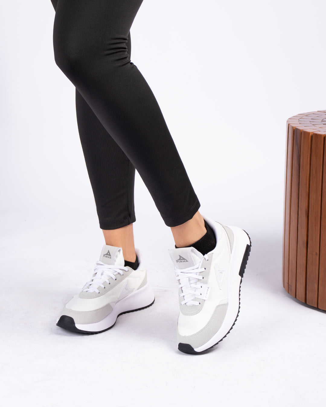 Más energía, más movimiento. Los tenis deportivos Pirma están listos para llevarte más lejos. Su diseño dinámico, con materiales ligeros y resistentes, los hace ideales para cualquier actividad. ¡Hazlos tuyos y mantente activa! Pirma tenis deportivos para mujer, modelo en color blanco con gris, elaborado en material textil, tipo de ajuste con agujetas al tono, suela sintética antideslizante con un alto de 4 cm, forro textil, tallas disponibles 22/26 incluyendo medias tallas, modelo con horma normal, adquirir talla habitual. Haz que cada paso cuente con Zapatería Fratello, calzado 100% mexicano. Ponte zapatos, no límites. Compra los tuyos ahora.