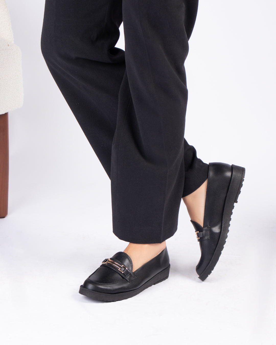 Las balerinas casuales de Fratello son sinónimo de elegancia sin esfuerzo. Su diseño práctico se adapta a tus actividades diarias, mientras mantiene tu estilo impecable. Esta temporada otoño-invierno, combínalas con leggings, vestidos sweater o jeans. ¡Descubre lo fácil que es verte bien y sentirte cómoda a cada paso! Fratello balerinas casuales para mujer, modelo en color negro, elaborado en material sintético, cuenta con herraje en color oro, estilo mocasín, tipo de ajuste pull on, suela sintética antideslizante, suela con un alto de 3 cm, forro sintético, tallas disponibles 22/26 incluyendo medias tallas, modelo con horma normal, adquirir talla habitual. Haz que cada paso cuente con Zapatería Fratello, calzado 100% mexicano. Ponte zapatos, no límites. Compra los tuyos ahora.