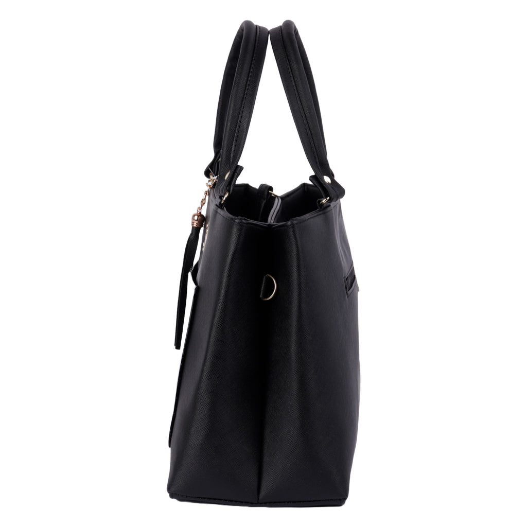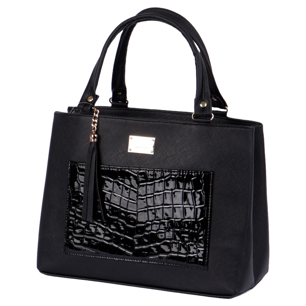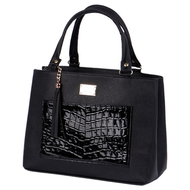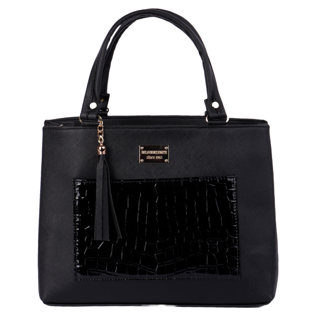 Renueva tu armario con los bolsos más elegantes del momento. Nuestra tienda online ofrece los estilos más trendy en moda femenina. Descubre diseños exclusivos y funcionales que complementarán tu look. ¡Compra ahora y luce increíble! Fratello bolsa color negro para mujer, contraste en diseño liso mate y texturizado charol elaborado en material sintético, Borla al tono, cuenta con dos compartimentos amplios internos con cremallera al tono y herraje color oro, así como una bolsa mini externa, tipo de cierre con broche de presión, cómodo tirante ajustable desmontable, doble asa superior de transporte, forro textil, diseñada con una medida de 23 cm de alto x 31 cm de ancho y 15 cm de profundidad y capacidad de 10.7 litros. Complementa tu estilo con accesorios de Zapatería Fratello, destacando la calidad y precio de la vanguardia mexicana.