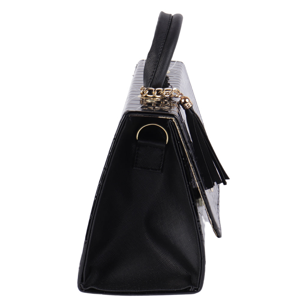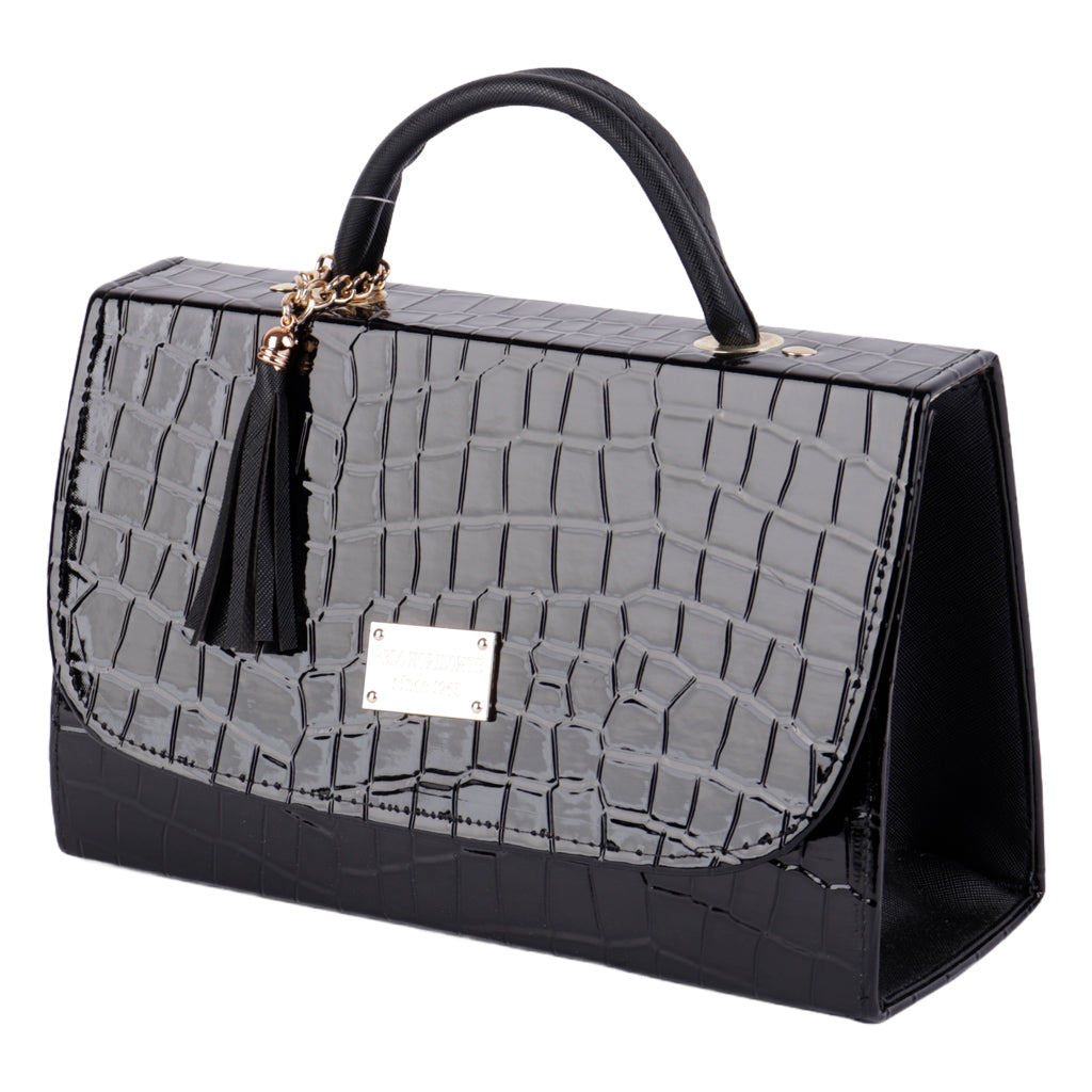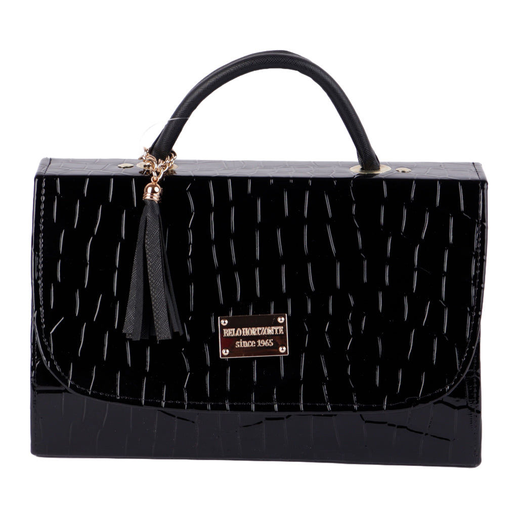 Renueva tu armario con los bolsos más elegantes del momento. Nuestra tienda online ofrece los estilos más trendy en moda femenina. Descubre diseños exclusivos y funcionales que complementarán tu look. ¡Compra ahora y luce increíble! Fratello bolsa color negro para mujer, diseño elaborado en material charol, con borla al tono, cuenta con un compartimento amplio interno, mini bolsillo interno, tipo de cierre con broche, cómodo tirante ajustable desmontable, asa superior de transporte, forro textil, diseñada con una medida de 18 cm de alto x 25 cm de ancho y 10 cm de profundidad con capacidad de 4.5 litros. Complementa tu estilo con accesorios de Zapatería Fratello, destacando la calidad y precio de la vanguardia mexicana.