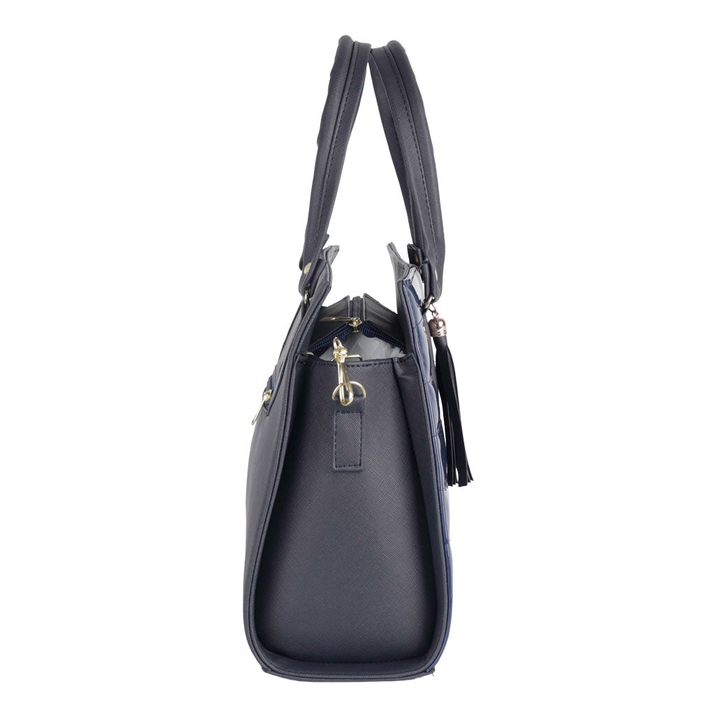 Lleva tu estilo a otro nivel con nuestros bolsos de mujer. Diseños exclusivos, a la moda y perfectos para cualquier ocasión. ¡Compra ahora y agrégalo a tu carrito! Fratello bolso color azul marino para mujer, diseño elaborado en material charol con sintético de alta calidad, diseño con relieve liso, borla de adorno en tono negro, cuenta con un compartimento amplio interno, tipo de cierre con cremallera, cómodo tirante ajustable desmontable, asa superior de transporte, forro textil, diseñada con una medida de 30 cm de alto x 25 cm de ancho y 12 cm de profundidad con capacidad de 9 litros. Complementa tu estilo con accesorios de Zapatería Fratello, destacando la calidad y precio de la vanguardia mexicana.