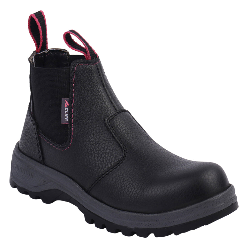 Sabemos lo importante que es proteger tus pies en un ambiente laboral con riesgo de accidentes por eso en Fratello tenemos para ti calzado con casco de poliamida, cómodo y con un diseño innovador. Cliff bota industrial para mujer, avalado por la norma NOM 113 STPS 2009, en color negro hecho en material flother, tipo pull on, suela sintética, forro textil, tallas disponibles 22/26 incluyendo medios puntos, modelo con horma normal, adquirir talla habitual. Calza con estilo con Zapatería Fratello, calzado mexicano a la vanguardia, calidad y precio.