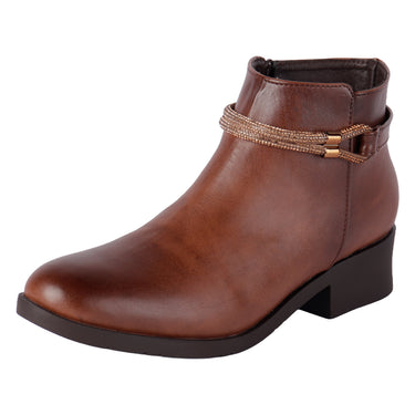 Unos buenos botines transforman cualquier outfit. Fratello te ofrece modelos con estilo, diseño funcional y materiales duraderos. Camina segura en los días fríos y complementa tu look con un calzado que lo dice todo. ¡Compra online y prepárate para llevar tu estilo al siguiente nivel! Fratello botín casual para mujer, en color tan, modelo elaborado en material sintético, tubo de 10 cm de altura, y 28 cm de circunferencia, cuenta con pulsera con aplicación de pedrería al tono, tipo de cierre con cremallera en lateral interno, al tono suela sintética pv, cuenta con tacón de bloque, con un alto de 4 cm forro sintético, tallas disponibles 23/26 incluyendo medias tallas, modelo con horma reducida, adquirir medio punto más para mayor comodidad. Haz que cada paso cuente con Zapatería Fratello, calzado 100% mexicano. Ponte zapatos, no límites. Compra los tuyos ahora.