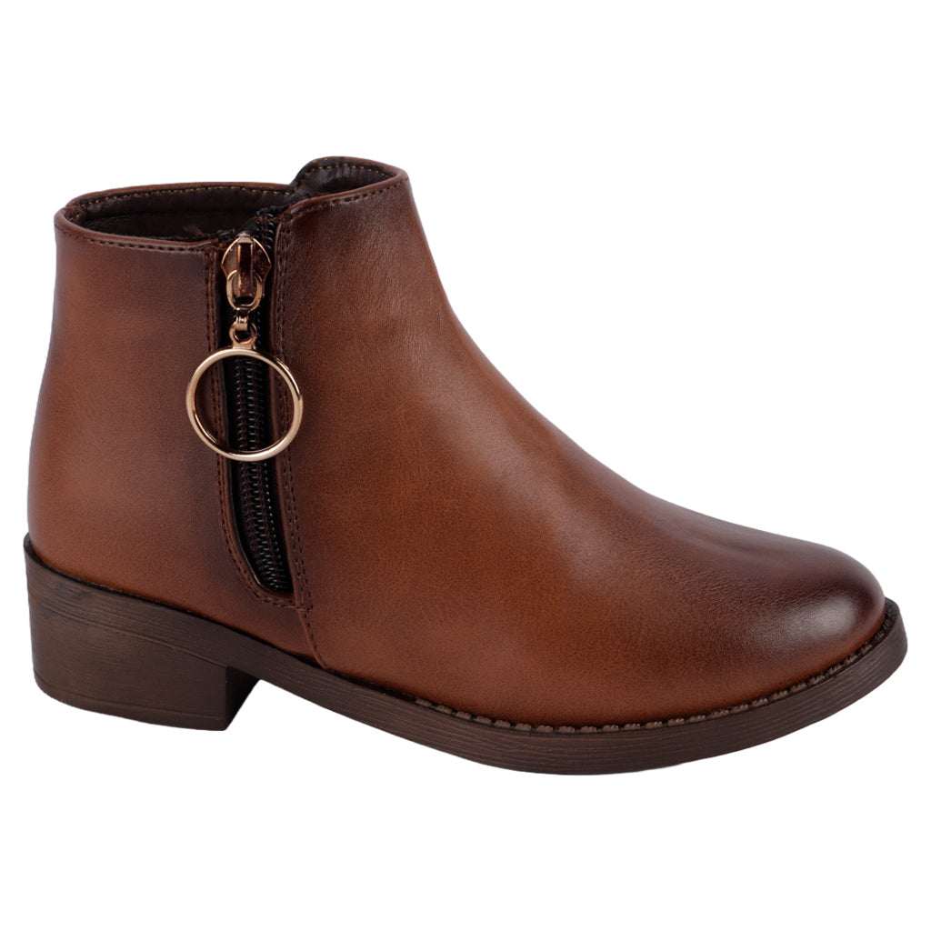 Si estás buscando un calzado que te permita estar a la moda y mantener tus pies cómodos, las botas casuales para niña son una excelente opción. Con su diseño sofisticado y su construcción resistente, estas botas son ideales para cualquier ocasión informal. Fratello botín para niña, en color camel, modelo elaborado en piel sintética lisa, tipo de cierre con cremallera, al tono, suela sintética ranil, cuenta con suela de bloque, con un alto de 3 cm forro sintético, tallas disponibles 18/21 incluyendo medias tallas, modelo con horma normal (talla fiel), te sugerimos adquirir talla habitual. Haz que cada paso cuente con Zapatería Fratello, calzado 100% mexicano. Ponte zapatos, no límites. Compra los tuyos ahora.