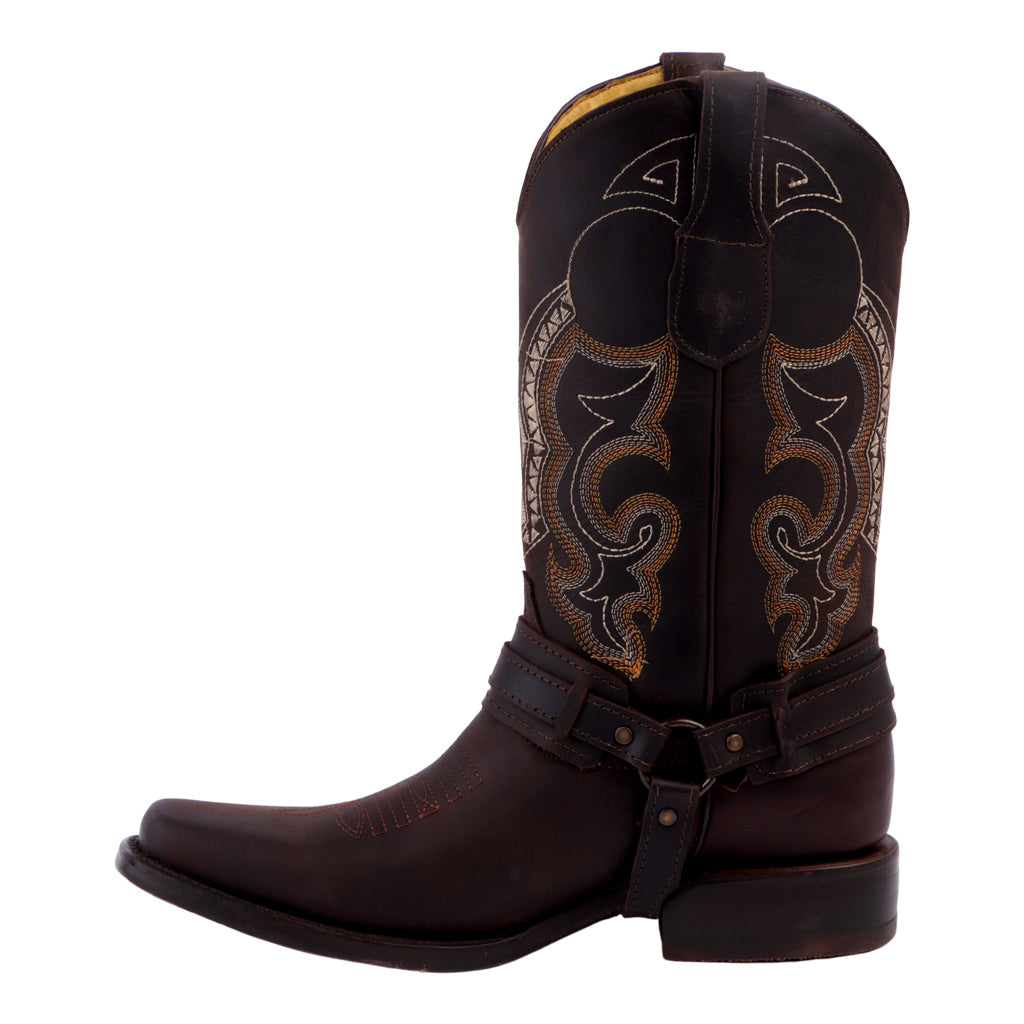 Si te gusta el estilo western, no puedes equivocarte con un par de botas vaqueras para hombre. Estas botas son un clásico que siempre está de moda, y su diseño distintivo es una declaración de moda en sí misma. Bota vaquera para hombre, modelo en color café, elaborado en piel, tubo con 30 cm de altura y 38 cm de circunferencia, suela de cuero, tacón con 4 cm de altura, ajuste slip on, forro de piel, tallas disponibles del 25 al 29, modelo con horma normal, adquirir talla habitual. Calza con estilo con Zapatería Fratello, calzado mexicano a la vanguardia, calidad y precio.