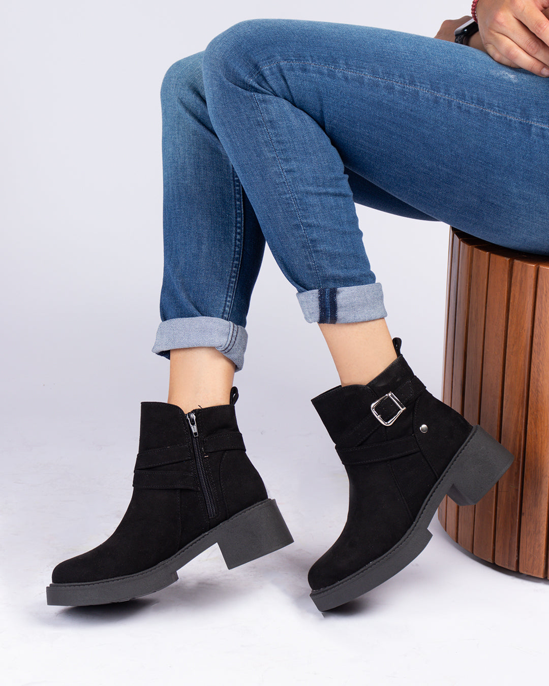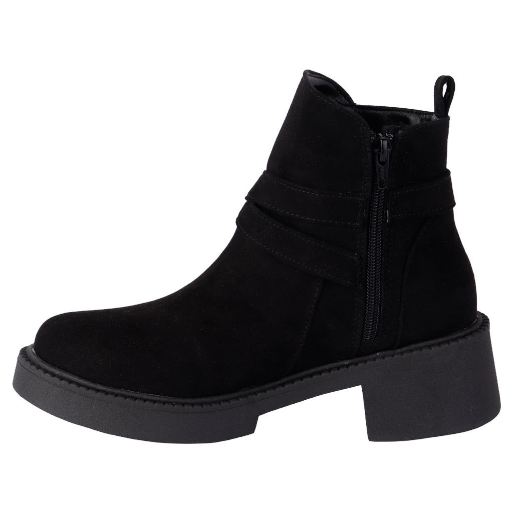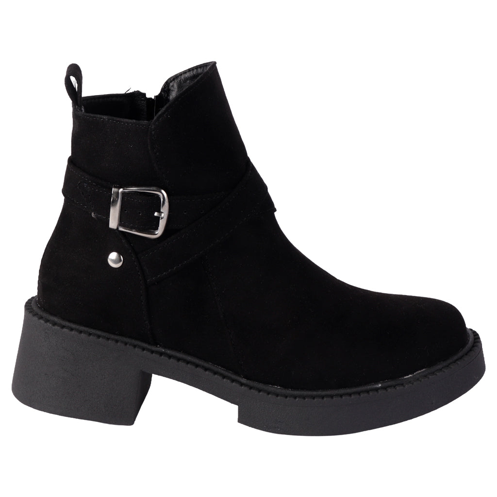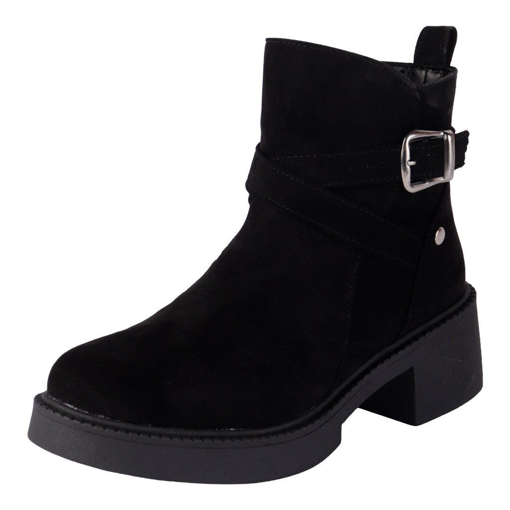 Camina con firmeza esta temporada con los botines Fratello. Diseñados para mujeres que aman el estilo y la comodidad, sus acabados de calidad y ajuste perfecto los hacen ideales para toda ocasión. Esta temporada otoño-invierno, dale a tus pies la protección y elegancia que merecen. Fratello botín para mujer, modelo en color negro, elaborado en material sintético, con hebilla color plata sin función de ajuste, tubo de 12 cm de altura, y 28 cm de circunferencia, tipo de cierre con cremallera en lateral interno, suela sintética antideslizante, con tacón ancho con un alto de 5 cm, forro sintético, tallas disponibles 23/26 incluyendo medias tallas, modelo con horma normal, adquirir talla habitual. Haz que cada paso cuente con Zapatería Fratello, calzado 100% mexicano. Ponte zapatos, no límites. Compra los tuyos ahora.