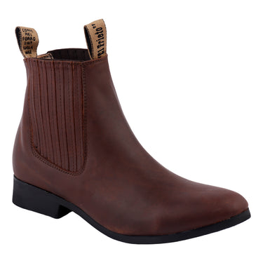 Cada paso cuenta en el mundo del vaquero. Las botas de Fratello están diseñadas pensando en la autenticidad y el carácter. Para hombres que buscan lo mejor, somos tu elección número uno. Siente la diferencia. Botas orgullosamente hechas en México, ¡Compra ahora! Fratello botín vaquero para hombre, en color café oscuro, modelo elaborado en material piel craizy, tubo de 13.5 cm y circunferencia de 28 cm, cuenta con diseño liso y estilo “Chelsea”, tipo de ajuste slip on, cuenta con tacón de bloque, en material sintético, antideslizante, suela con un alto de 3 cm, forro cuero, tallas disponibles 25.5 al 29 incluyendo medias tallas, modelo con horma normal (talla fiel), te sugerimos adquirir talla habitual. Haz que cada paso cuente con Zapatería Fratello, calzado 100% mexicano. Ponte zapatos, no límites. Compra los tuyos ahora.