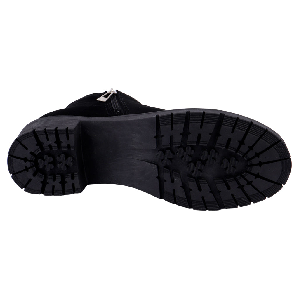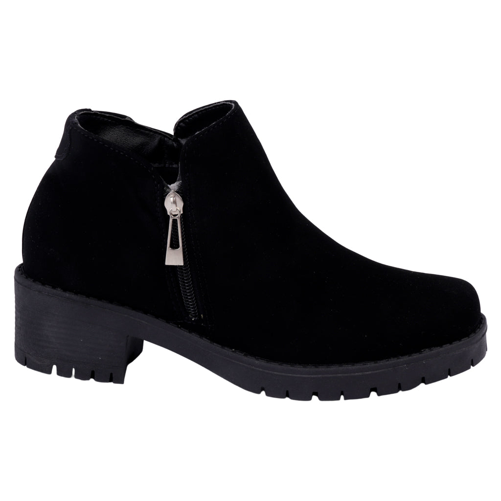 Los botines de dama son el calzado perfecto para cualquier época del año. Ya sea para el otoño o el invierno, su diseño atemporal y su comodidad te permitirán lucir chic en todo momento. Fratello botín para mujer en color negro, elaborado en material buck, tubo de 9 cm de altura y 30 cm de circunferencia, con cierre al tono en el lateral, suela sintética TR con tacón ancho de 4 cm, forro malla, tallas disponibles del 22 al 26, modelo con horma normal, adquirir talla habitual. Calza con estilo con Zapatería Fratello, calzado mexicano a la vanguardia, calidad y precio.