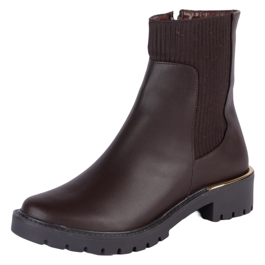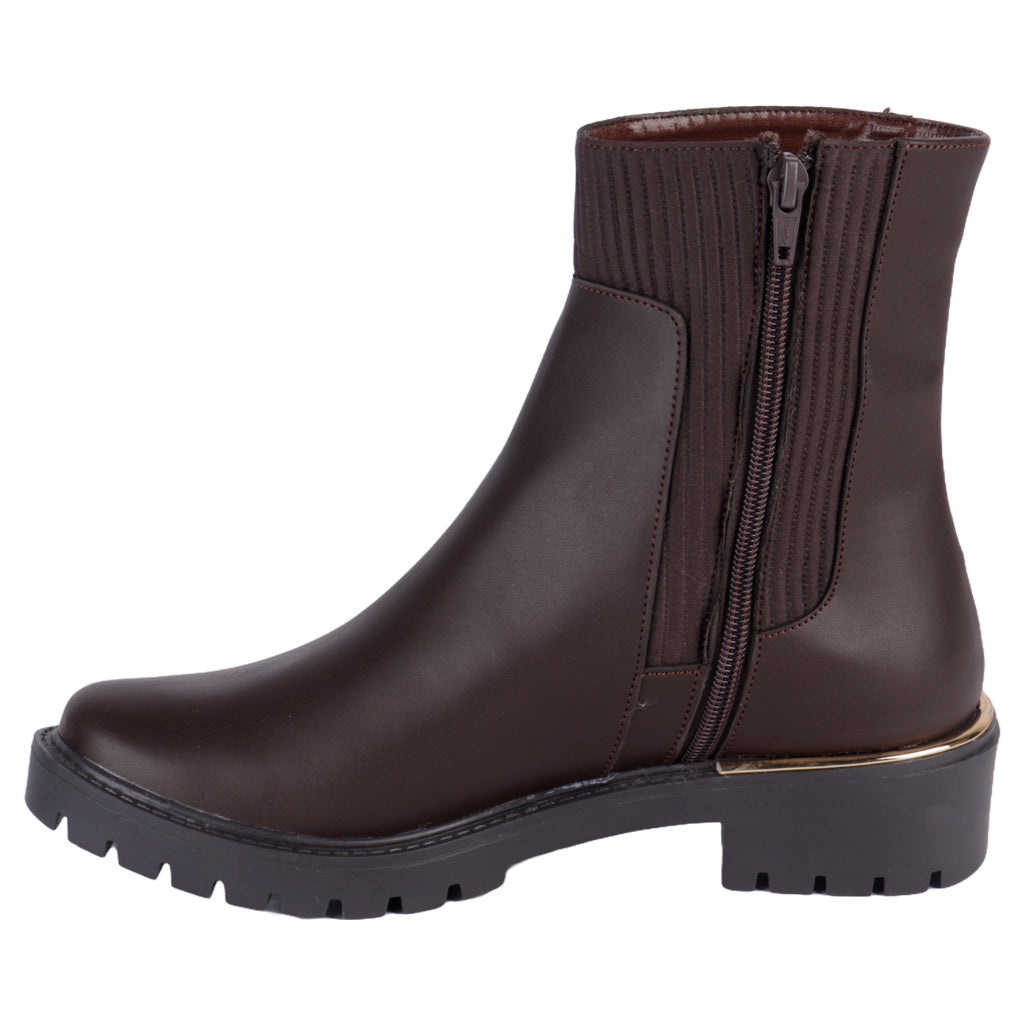 Da un paso audaz con nuestro Botín Fratello. Diseñado para la mujer que no teme destacar, este calzado combina innovación y estilo con una silueta vanguardista y detalles contemporáneos. Ya sea que los combines con jeans ajustados o un vestido chic, prepárate para capturar miradas. ¡Compra en línea y deja huella con Fratello! Fratello botín casual para mujer, en color café, modelo elaborado en material piel sintética lisa, diseño de tubo de 13 cm de altura, y 29 cm de circunferencia, cuenta con tipo de cierre con cremallera en lateral interno, con diseño de textura tipo calcetín, suela sintética de 2 cm de alto, cuenta con tacón ancho con un alto de 4 cm, forro textil y plantilla sintética, tallas disponibles 22/26, incluye medias tallas, modelo con horma normal (talla fiel), te sugerimos adquirir talla habitual. Haz que cada paso cuente con Zapatería Fratello, calzado 100% mexicano. Ponte zapatos, no límites. Compra los tuyos ahora.