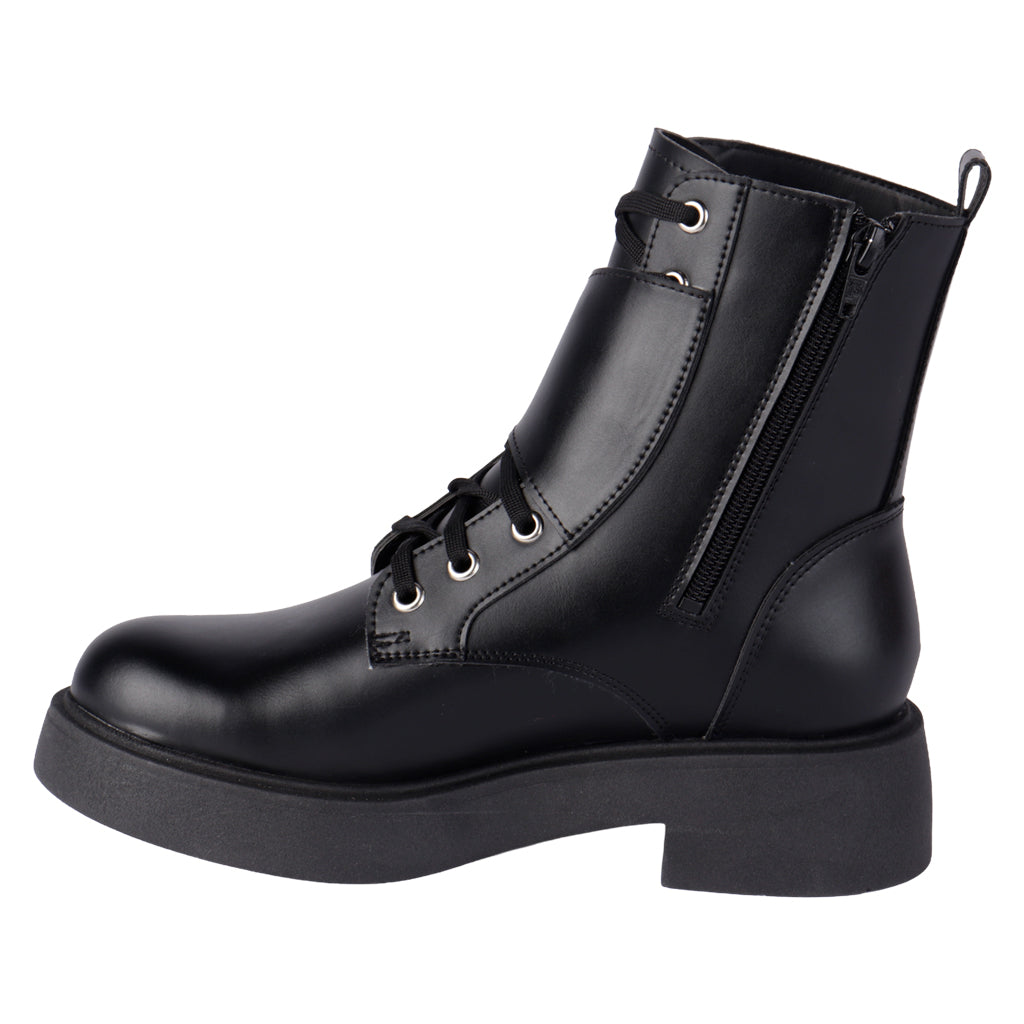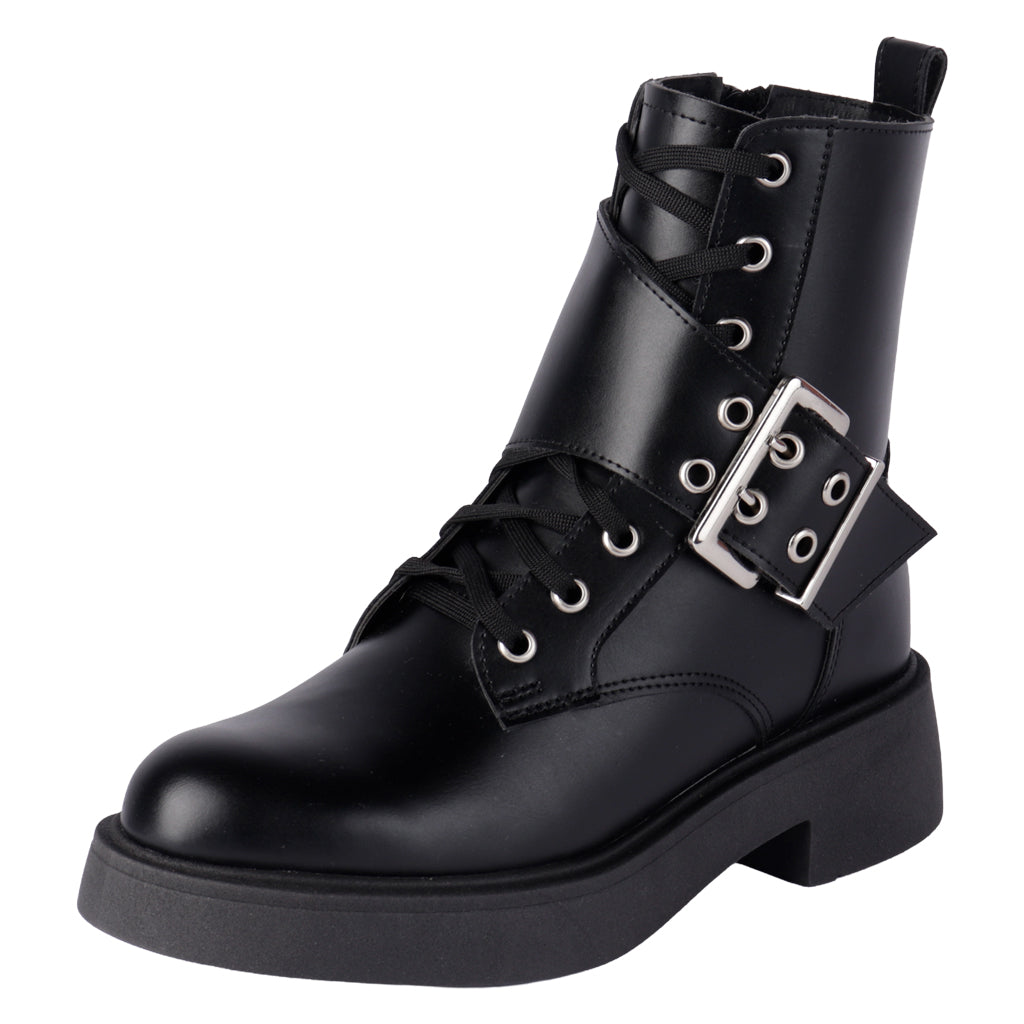 Fratello reinventa el estilo casual con estas botas irresistibles. Con detalles sutiles y acabados perfectos, son ideales para cualquier plan de otoño-invierno. Ya sea en la oficina o un paseo con amigas, caminarás con elegancia y confort. ¡Compra online y eleva tus outfits diarios con estas botas que lo tienen todo! Fratello botas casuales para mujer, estilo combat, modelo en color negro, elaborado en material sintético, tubo de 16 cm de altura, y 28 cm de circunferencia, tipo de cierre con cremallera en lateral interno, agujetas al tono, cuenta con una pulsera con hebilla color plata, suela sintética antideslizante, suela con un alto de 4 cm, forro sintético, tallas disponibles 22/26 incluyendo medias tallas, modelo con horma normal, adquirir talla habitual. Haz que cada paso cuente con Zapatería Fratello, calzado 100% mexicano. Ponte zapatos, no límites. Compra los tuyos ahora.
