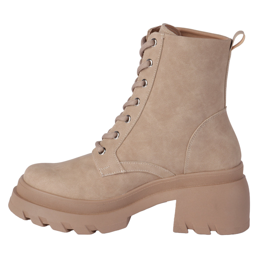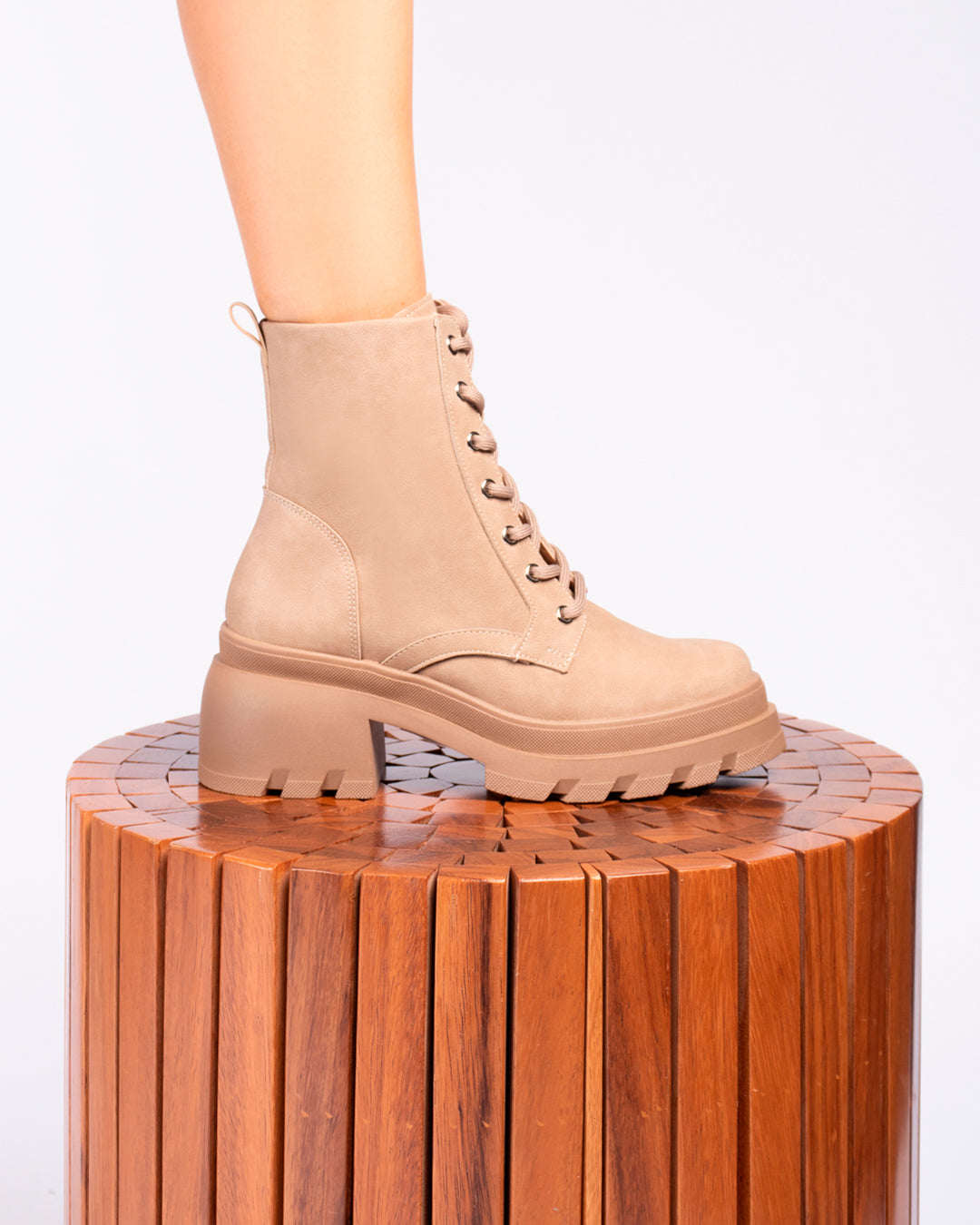 Estas botas casuales están pensadas para ti. Fratello combina estilo urbano con practicidad, creando modelos cómodos, modernos y resistentes al clima frío. Camina segura, mantente abrigada y luce increíble sin esfuerzo. ¡Agrégalas a tu carrito hoy mismo y disfruta cada paso! Green Love botas casuales para mujer, estilo combat, modelo en color arena, elaborado en material sintético, tubo de 15 cm de altura, y 29 cm de circunferencia, tipo de cierre con agujetas al tono, suela sintética antideslizante, tacón ancho con un alto de 7 cm, forro textil, tallas disponibles 22/26 incluyendo medias tallas, modelo con horma normal, adquirir talla habitual. Haz que cada paso cuente con Zapatería Fratello, calzado 100% mexicano. Ponte zapatos, no límites. Compra los tuyos ahora.