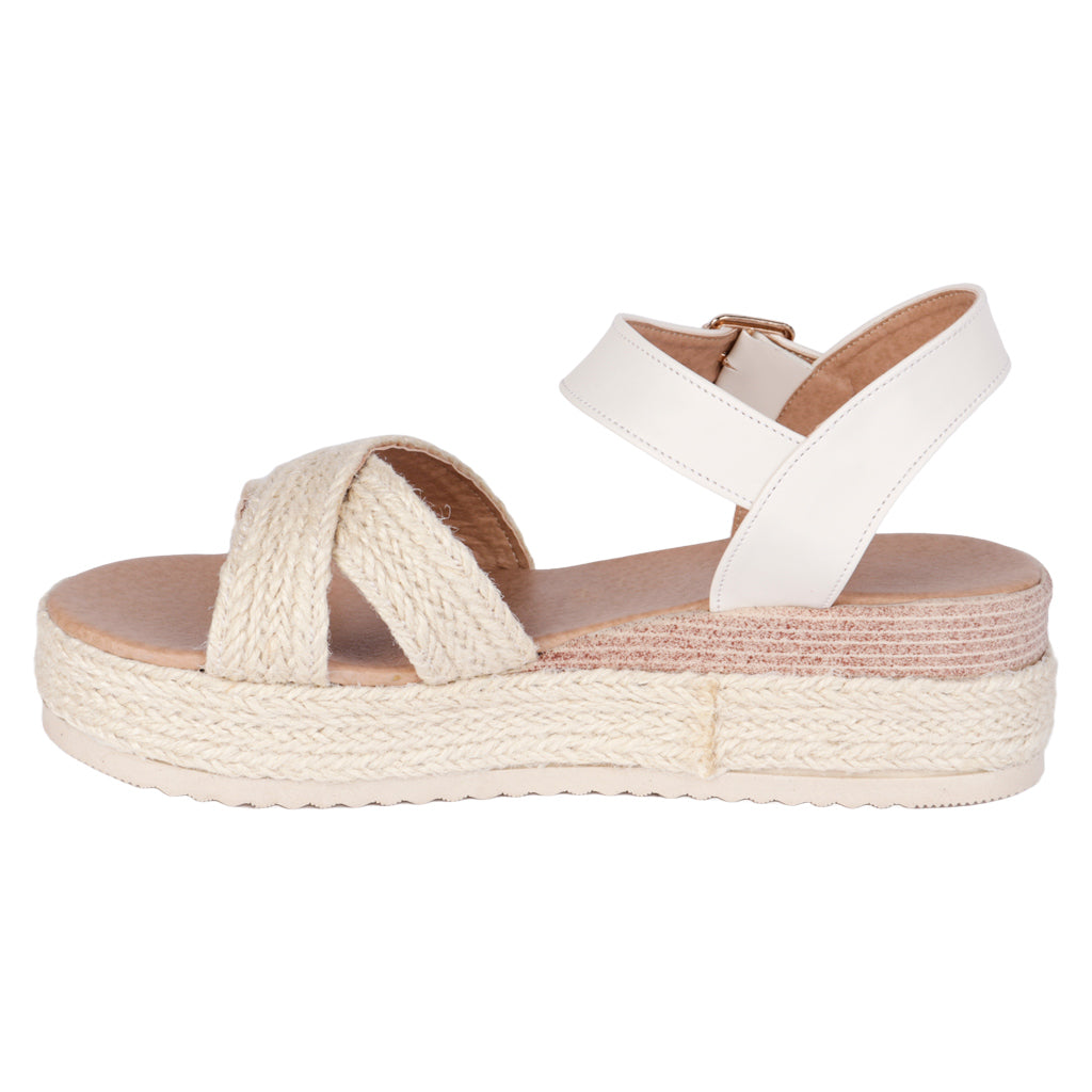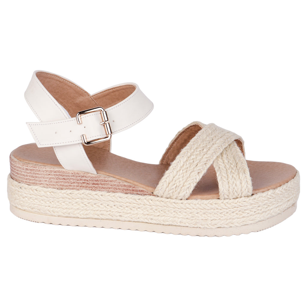 En un mundo en constante cambio, hay algo que nunca pasará de moda: la comodidad. En Fratello, nuestras alpargatas para mujer están diseñadas con ese principio en mente. Con diseños ergonómicos, cada paso será un placer. ¡Haz clic, compra en línea y descubre la comodidad que nunca pasa de moda con Fratello! Fratello alpargata abierta para mujer, en color beige, modelo elaborado en material yute, cuenta con pulsera con hebilla, tipo de cierre con hebilla, en tono oro, suela sintética ranil, antideslizante con un alto de 5 cm forro sintético, tallas disponibles 22/26 incluyendo medias tallas, modelo con horma normal (talla fiel), te sugerimos adquirir talla habitual. Haz que cada paso cuente con Zapatería Fratello, calzado 100% mexicano. Ponte zapatos, no límites. Compra los tuyos ahora.