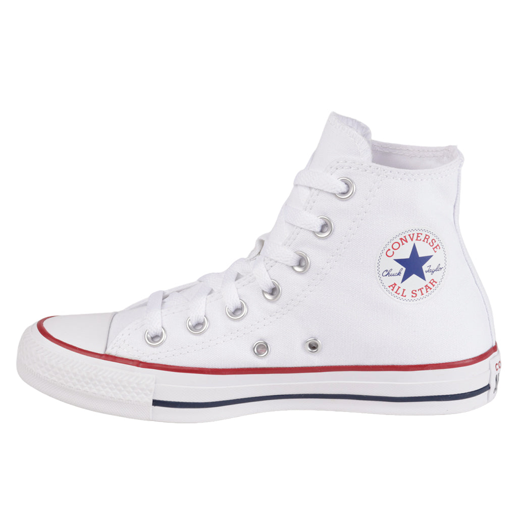 Necesitas un estilo infalible. El Chuck Taylor All-Star es un elemento esencial: el choclo y la bota brindan una apariencia verdaderamente clásica, a la vez que las agujetas blancas y el parche de estrella en el tobillo rinden homenaje al legado del Chuck. Este es el calzado que combina con todo que no te cansarás de usar. Consíguelo ya. Converse tenis casuales de bota unisex, en color blanco, modelo elaborado en material lona, cuenta con diseño de estilo moderno y ligero, tipo de ajuste con agujetas para mejor agarre, en color blanco, suela en material sintético, antideslizante, con altura de 2 cm, forro sintético, tallas disponibles 23 al 25 incluyendo medias tallas, modelo con horma normal (talla fiel), te sugerimos adquirir talla habitual. Haz que cada paso cuente con Zapatería Fratello, calzado 100% mexicano. Ponte zapatos, no límites. Compra los tuyos ahora.