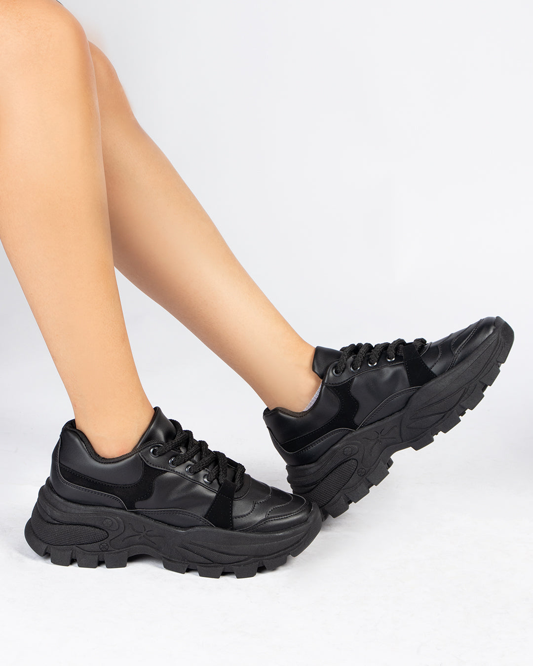 La mezcla perfecta entre lo sencillo y lo cool. Estos tenis casuales Fratello son ideales para llevar todos los días. Lúcelos con faldas, jeans o joggers. ¡Haz clic y agrégalos a tu colección de básicos con estilo! Fratello tenis casuales para mujer, modelo en color negro, elaborado en material sintético, tipo de ajuste con agujetas al tono, suela sintética antideslizante con un alto de 5 cm, forro textil, tallas disponibles 22/26 incluyendo medias tallas, modelo con horma normal, adquirir talla habitual. Haz que cada paso cuente con Zapatería Fratello, calzado 100% mexicano. Ponte zapatos, no límites. Compra los tuyos ahora.