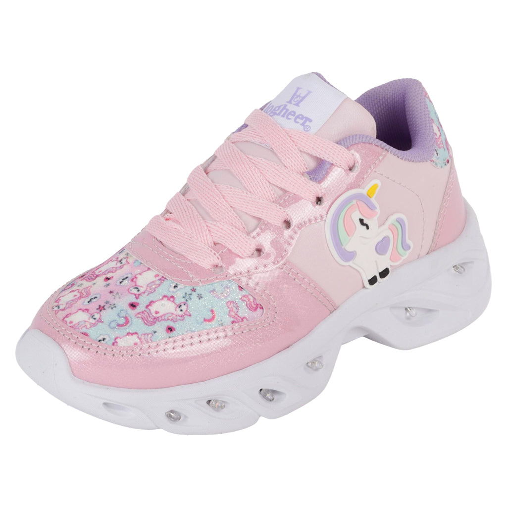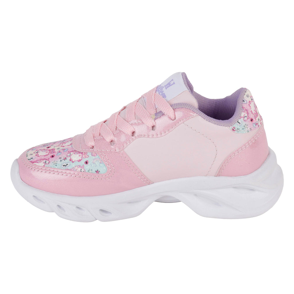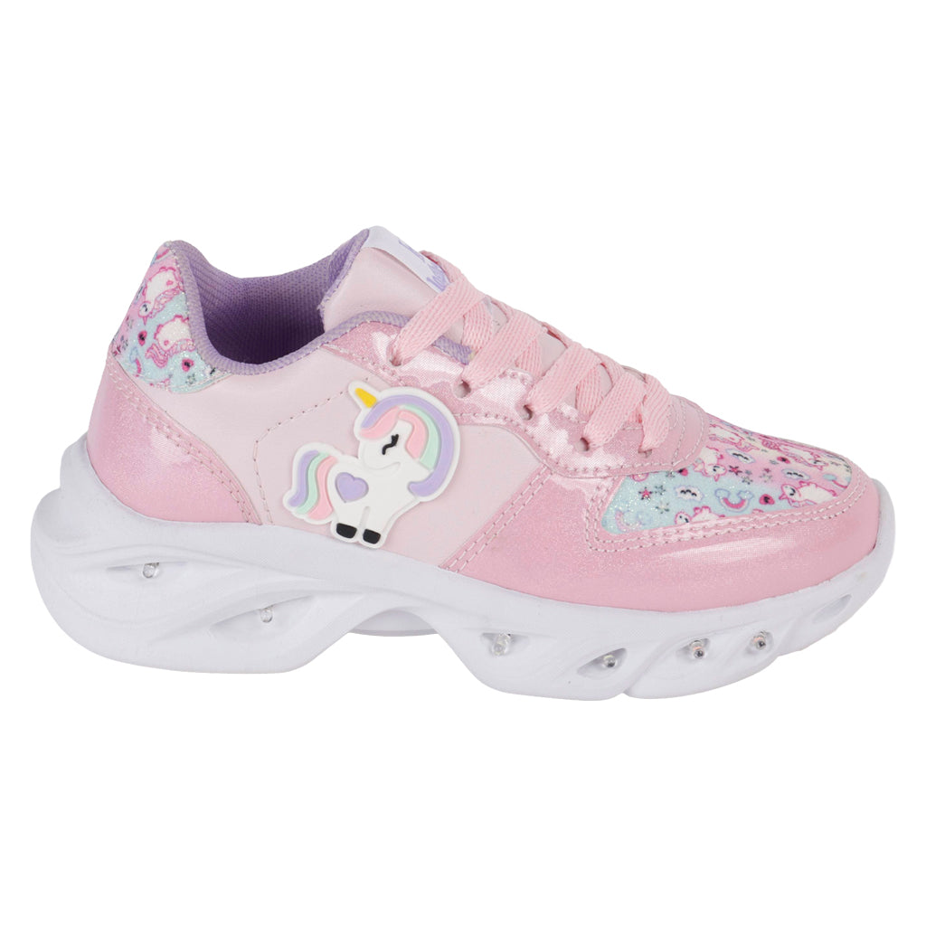 Fratello tenis deportivo para niña, en color rosa metálico, modelo elaborado en material sintético, cuenta con aplicación de unicornio y luces, tipo de cierre con agujetas al tono, suela sintética antideslizante, cuenta con suela plana, con un alto de 3 cm forro sintético, tallas disponibles 18.21.5 incluyendo medias tallas, modelo con horma normal (talla fiel), te sugerimos adquirir talla habitual. Haz que cada paso cuente con Zapatería Fratello, calzado 100% mexicano. Ponte zapatos, no límites. Compra los tuyos ahora.