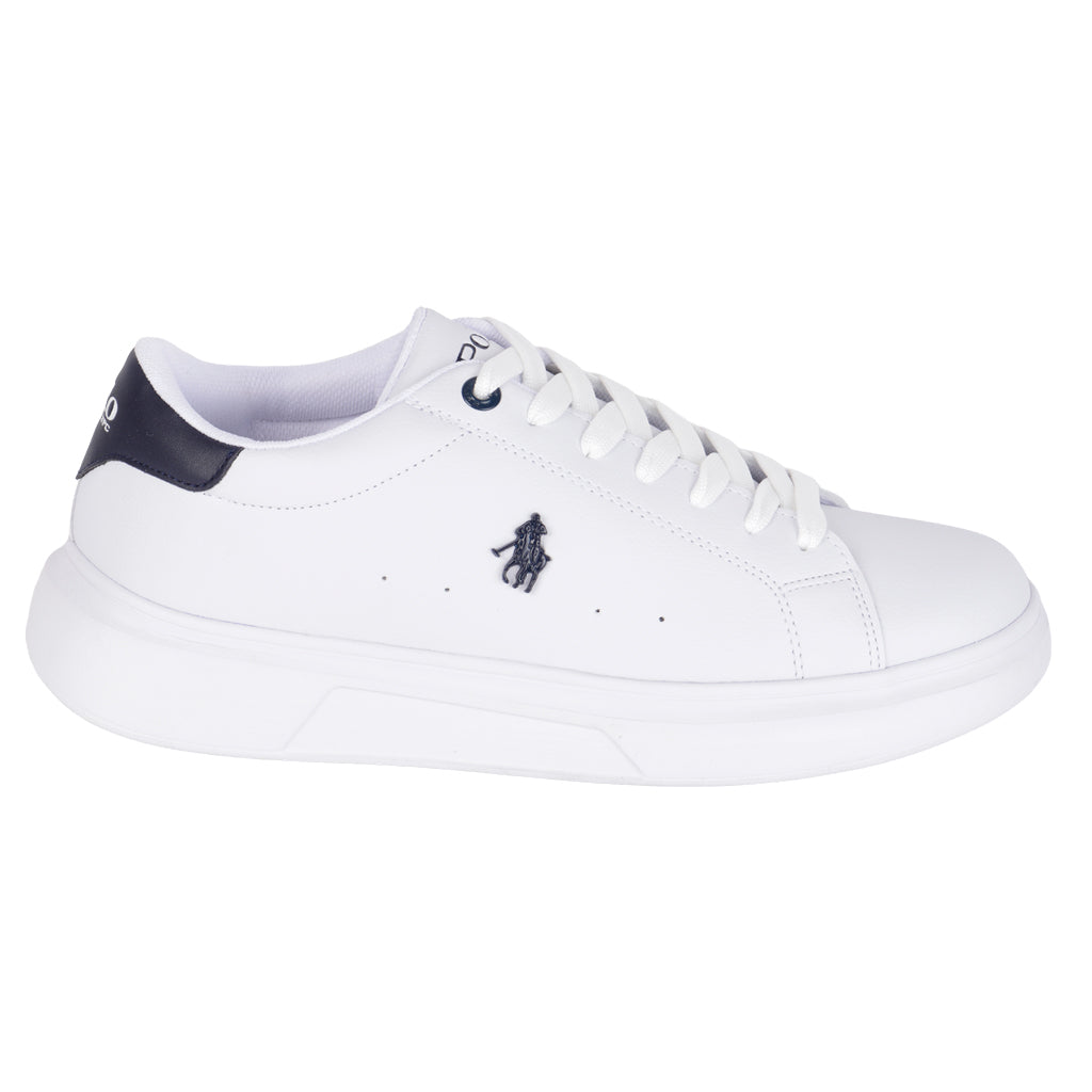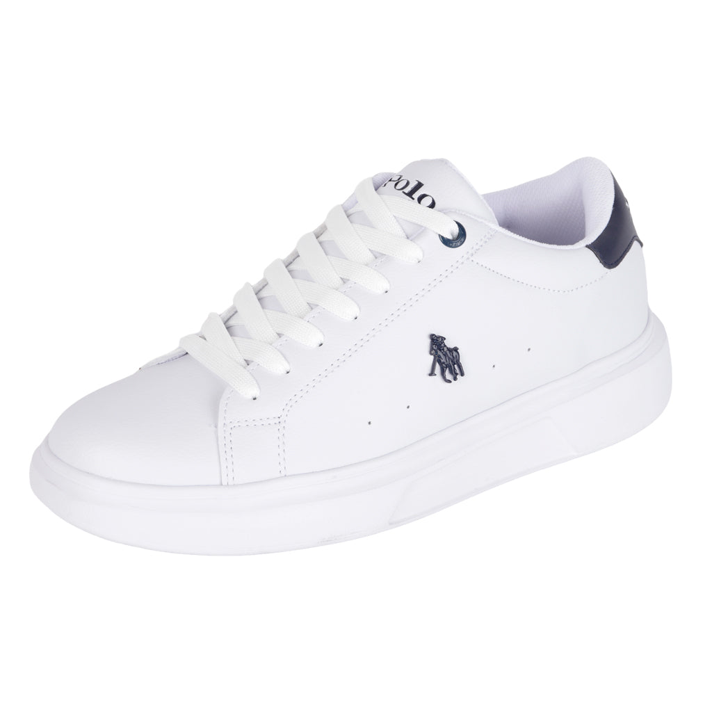 Haz una declaración de estilo con nuestros tenis casuales Fratello, diseñados para el hombre moderno que busca comodidad y moda en cada paso. Con un diseño elegante y detalles cuidadosamente elaborados, estos tenis son la opción perfecta para cualquier ocasión casual. ¡Compra en línea y recibe en la comodidad de tu hogar! Polo HPC tenis casual urbano para hombre, en color blanco con tonos color azul marino, modelo elaborado en material piel sintética, tipo de ajuste con agujetas, en tono blanco, suela sintética cuenta con suela plana, con un alto de 3 cm forro tallas disponibles 25 al 29 incluyendo medias tallas, modelo con horma normal (talla fiel), te sugerimos adquirir talla habitual. Haz que cada paso cuente con Zapatería Fratello, calzado 100% mexicano. Ponte zapatos, no límites. Compra los tuyos ahora.