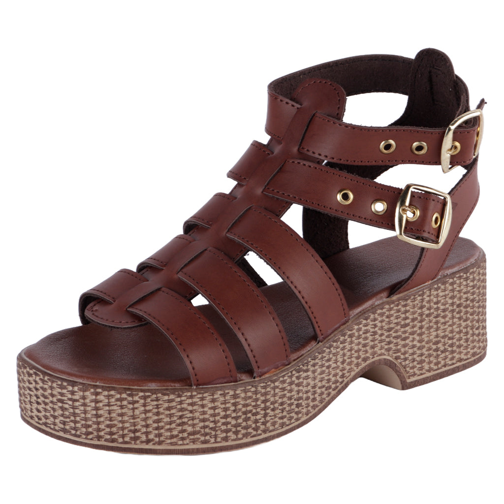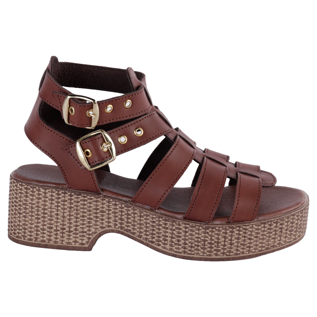 Estas sandalias de plataforma son la opción perfecta para un look casual y relajado. Su estilo moderno se complementa con una comodidad excepcional, ideales para tus paseos diarios o reuniones con amigas. ¡Cómpralas en línea en Zapatería Fratello y eleva tu estilo esta temporada! Fratello sandalia de plataforma moderna para mujer, modelo en color café, elaborado en material sintético azteca, estilo gladiador, tipo de cierre de doble pulsera con hebilla color oro, suela de plataforma sintética, con un alto de 5 cm, forro y plantilla sintético, tallas disponibles 22/26 incluyendo medias tallas, modelo con horma normal (talla fiel), te sugerimos adquirir talla habitual. Haz que cada paso cuente con Zapatería Fratello, calzado 100% mexicano. Ponte zapatos, no límites. Compra los tuyos ahora.