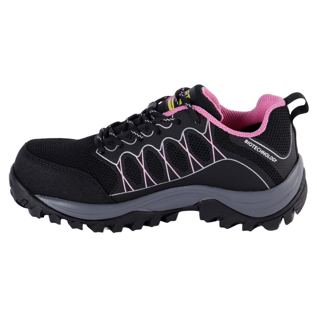 Para las mujeres que no se detienen, estos tenis industriales para primavera-verano son la opción perfecta para quienes buscan un calzado confiable y con un diseño moderno. Su construcción resistente asegura un uso prolongado sin perder su estilo robusto. Ya sea para el trabajo o actividades al aire libre, estas botas son tu mejor aliado. ¡Cómpralas en línea en Zapatería Fratello y obtén la protección que necesitas con el estilo que amas! Fratello tenis industrial para mujer, en color negro con rosa, modelo elaborado en material textil con casco de acero, cuenta con diseño en laterales y plantilla confort, avalado por la norma NOM 113 STPS 2009, tipo de cierre con agujetas al tono, suela sintética hule, antideslizante, cuenta con suela plana, con un alto de 4 cm forro textil, tallas disponibles 22/26 incluyendo medias tallas, modelo con horma normal (talla fiel), te sugerimos adquirir talla habitual. Haz que cada paso cuente con Zapatería Fratello, calzado 100% mexicano. Ponte zapatos