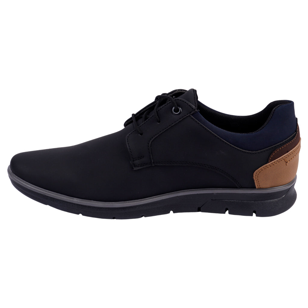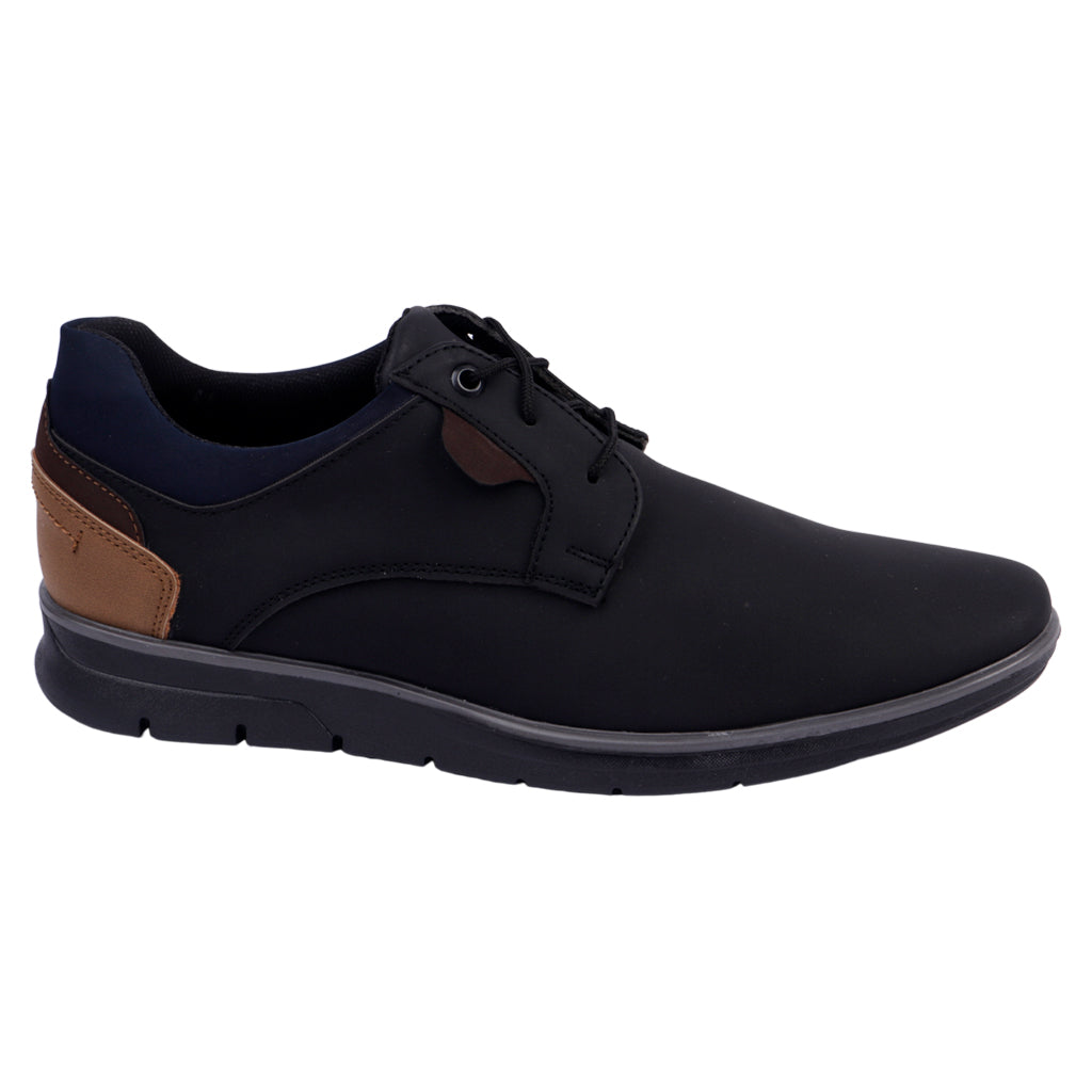 Luce ese estilo único que te caracteriza, lleva tu calzado Fratello a tus eventos formales o casuales, podrás sentirte cómoda y vestir a la moda, pues quedan súper bien con todo. Fratello zapato casual para hombre, en color negro, con agujetas para un mejor ajuste, hecho en material sintético con elegante diseño de aplicaciones en tono café en la parte del talón, suela en material tr con 3 cm de altura, forro textil, tallas disponibles 25.5/29 incluyendo medios puntos, modelo con horma normal, adquirir talla habitual. Calza con estilo con Zapatería Fratello, calzado mexicano a la vanguardia, calidad y precio.