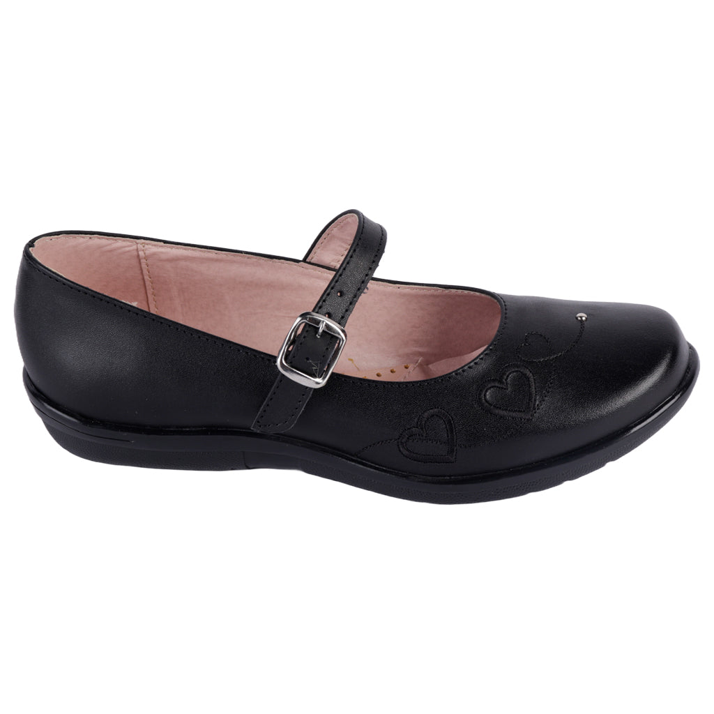 Cada día en la escuela o universidad presenta nuevos desafíos y oportunidades. En Zapatería Fratello, queremos que estés preparada para enfrentarlos con confianza. Nuestros zapatos escolares para mujer no solo te ofrecen estilo, sino también la durabilidad y resistencia que necesitas. ¡Haz clic, compra en línea y enfrenta cada desafío con el mejor calzado a tu lado! Fratello zapato escolar, en color negro, modelo elaborado en material piel, cuenta con diseño de corazones bordados en la parte frontal, tipo de ajuste con hebilla, en tono plateado, suela material P.V.C., antideslizante, suela con un alto de 2 cm, forro sintético, tallas disponibles 22 al 26 incluyendo medias tallas, modelo con horma normal (talla fiel), te sugerimos adquirir talla habitual. Haz que cada paso cuente con Zapatería Fratello, calzado 100% mexicano. Ponte zapatos, no límites. Compra los tuyos ahora.