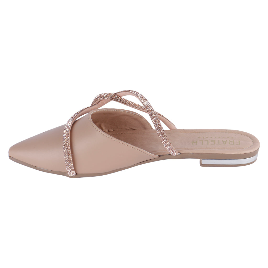 Estos mules son la opción perfecta para complementar tus looks de primavera-verano. Su diseño fresco y moderno las convierte en el calzado ideal para cualquier ocasión, desde el trabajo hasta una salida con amigas. ¡Hazte con ellas en Zapatería Fratello y disfruta de su estilo atemporal! Compra en línea hoy mismo. Fratello mules para mujer, modelo en color nude, elaborado en material sintético, cuenta con tiras de pedrería entrelazadas en el empeine, tipo de ajuste slip on, suela sintética con un alto de 1.5 cm, forro y plantilla sintéticos, tallas disponibles 22/26 incluyendo medias tallas, modelo con horma normal (talla fiel), te sugerimos adquirir talla habitual. Haz que cada paso cuente con Zapatería Fratello, calzado 100% mexicano. Ponte zapatos, no límites. Compra los tuyos ahora.