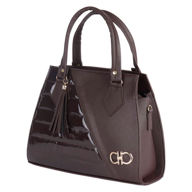 Lleva tu estilo a otro nivel con nuestros bolsos de mujer. Diseños exclusivos, a la moda y perfectos para cualquier ocasión. ¡Compra ahora y agrégalo a tu carrito! Fratello bolso color chocolate para mujer, diseño elaborado en material charol con sintético de alta calidad, diseño con relieve liso, borla de adorno en tono negro, cuenta con un compartimento amplio interno, tipo de cierre con cremallera, cómodo tirante ajustable desmontable, asa superior de transporte, forro textil, diseñada con una medida de 30 cm de alto x 25 cm de ancho y 12 cm de profundidad con capacidad de 9 litros. Complementa tu estilo con accesorios de Zapatería Fratello, destacando la calidad y precio de la vanguardia mexicana.