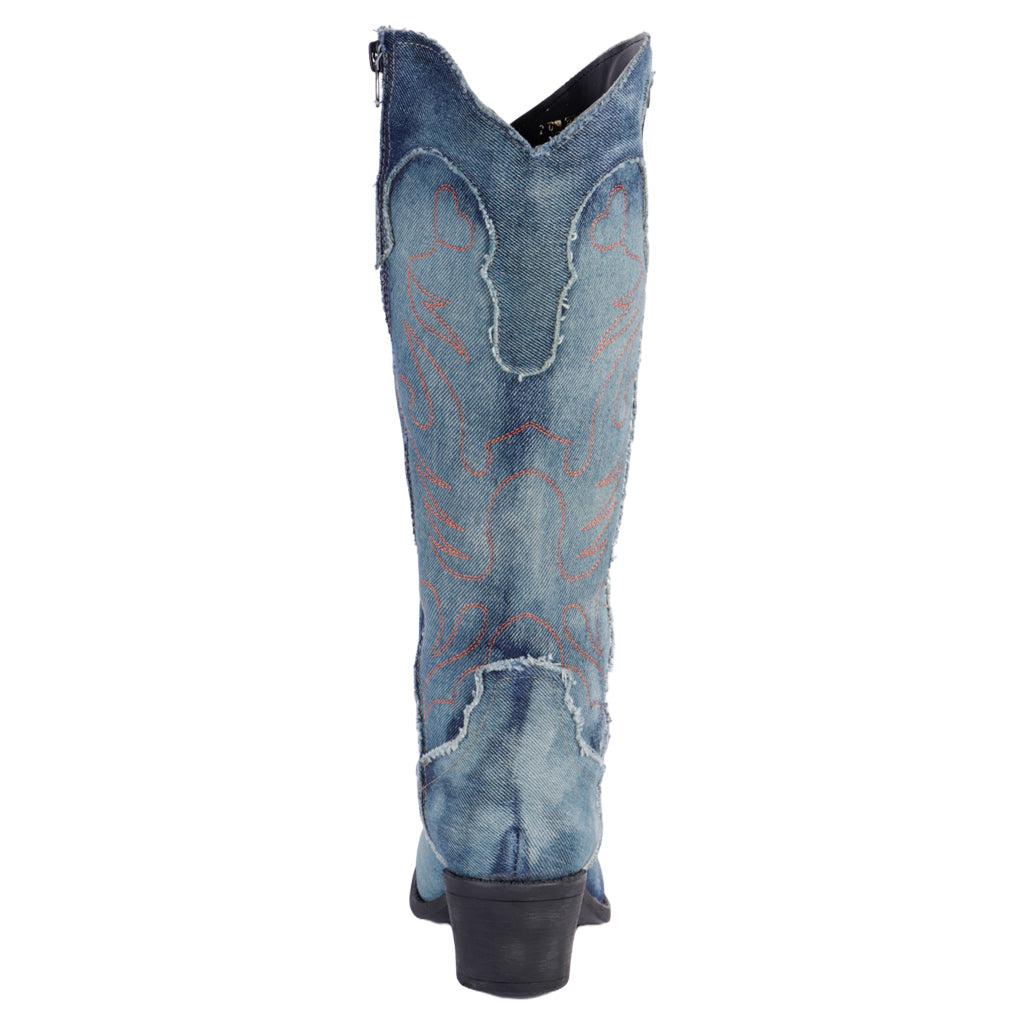 Eleva tu estilo con nuestra Bota Vaquera Fratello. Perfecta para las amantes de la moda que buscan un toque de autenticidad, esta bota fusiona el encanto bohemio con la resistencia vaquera. Con detalles bordados y un tacón robusto, es la elección ideal para destacar en cualquier ocasión. ¡Compra en línea y haz que cada paso cuente con Fratello! Fratello bota vaquera para mujer, en color azul mezclilla, modelo elaborado en material mezclilla, tubo de 37 cm de altura, y 40 cm de circunferencia, cuenta con tipo de cierre con cremallera en lateral interno al tono, suela sintética tr, cuenta con tacón ancho, con un alto de 5 cm forro y plantilla textil, tallas disponibles 22/26 no incluye medias tallas, modelo con horma normal (talla fiel), te sugerimos adquirir talla habitual. Haz que cada paso cuente con Zapatería Fratello, calzado 100% mexicano. Ponte zapatos, no límites. Compra los tuyos ahora.