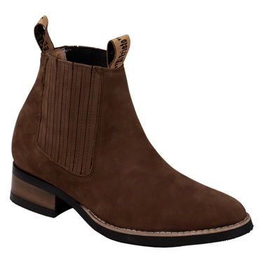 El estilo vaquero nunca pasa de moda. En Zapatería Fratello, te ofrecemos botas para hombres que reflejan esa esencia ruda y elegante. Impresiona a cada paso con tus nuevas cowboots, ¿Estás listo para dejar huella?. ¡Elige Fratello! Fratello botín vaquero para hombre, en color cefé, modelo elaborado en material nobuck, cuenta con un tubo de 14 cm de alto y una circunferencia de 29 cm, tipo de ajuste pull on con elásticos a los costados, en color café, suela en material sintético y tacón de bloque, antideslizante, con altura de 3.5 cm, forro textil, tallas disponibles 25.5 al 29 incluyendo medias tallas, modelo con horma normal (talla fiel), te sugerimos adquirir talla habitual. Haz que cada paso cuente con Zapatería Fratello, calzado 100% mexicano. Ponte zapatos, no límites. Compra los tuyos ahora.