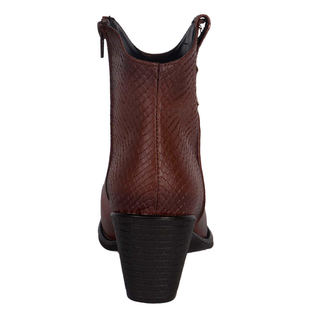Redefine tu estilo con los botines Fratello. Su diseño elegante y su estructura firme ofrecen una silueta estilizada y segura. Ideales para mujeres que disfrutan de la moda y la comodidad en partes iguales. ¡Compra en línea y camina con confianza con Fratello! Fratello botín vaquera para mujer, en color café, modelo elaborado en material sintético tipo gamuza, tubo de 21 cm de altura, y 29 cm de circunferencia, cuenta con herraje decorativo, tipo de cierre con cremallera al tono, suela sintética antideslizante, cuenta con tacón de bloque, con un alto de 6 cm forro sintético, tallas disponibles 23-26 incluyendo medias tallas, modelo con horma normal (talla fiel), te sugerimos adquirir talla habitual. Haz que cada paso cuente con Zapatería Fratello, calzado 100% mexicano. Ponte zapatos, no límites. Compra los tuyos ahora.