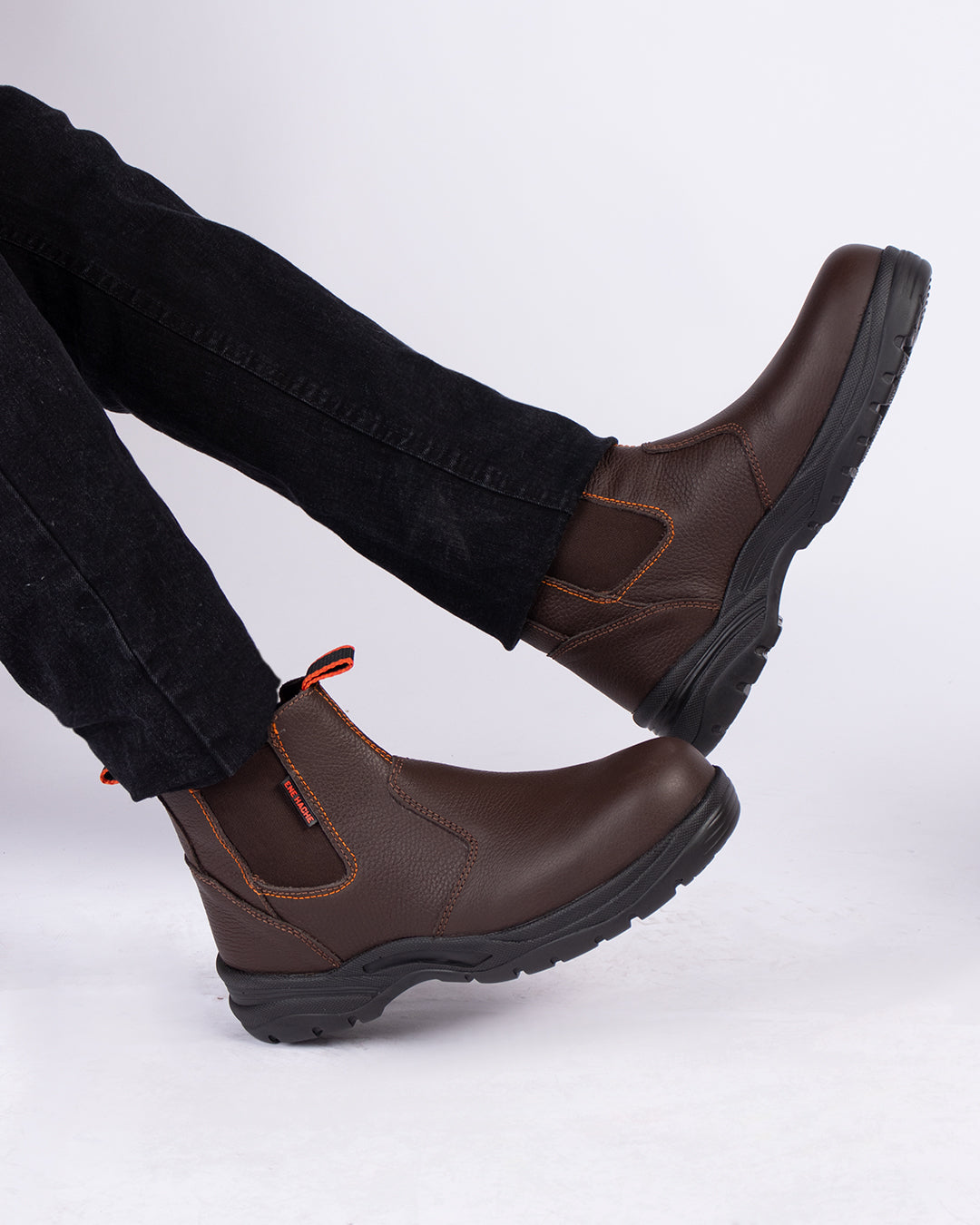 Las botas industriales Fratello protegen cada paso. Diseñadas para resistir, brindan soporte en terrenos difíciles y ambientes de trabajo pesados. Cuentan con suela antiderrapante y estructura firme. ¡Compra online y trabaja con la confianza que mereces! Fratello botas industriales para hombre, modelo en color café, elaborado en piel, tubo de 12 cm de altura, y 30 cm de circunferencia, tipo de ajuste pull on, con elástico a los laterales, cuenta con casquillo de protección de poliamida, suela sintética con un alto de 4 cm, suela sintética, forro textil, tallas disponibles 25/29 incluyendo medias tallas, modelo con horma normal (talla fiel), te sugerimos adquirir talla habitual. Haz que cada paso cuente con Zapatería Fratello, calzado 100% mexicano. Ponte zapatos, no límites. Compra los tuyos ahora.