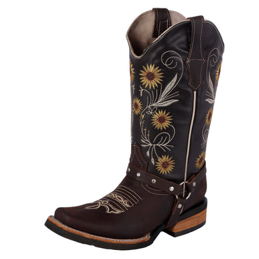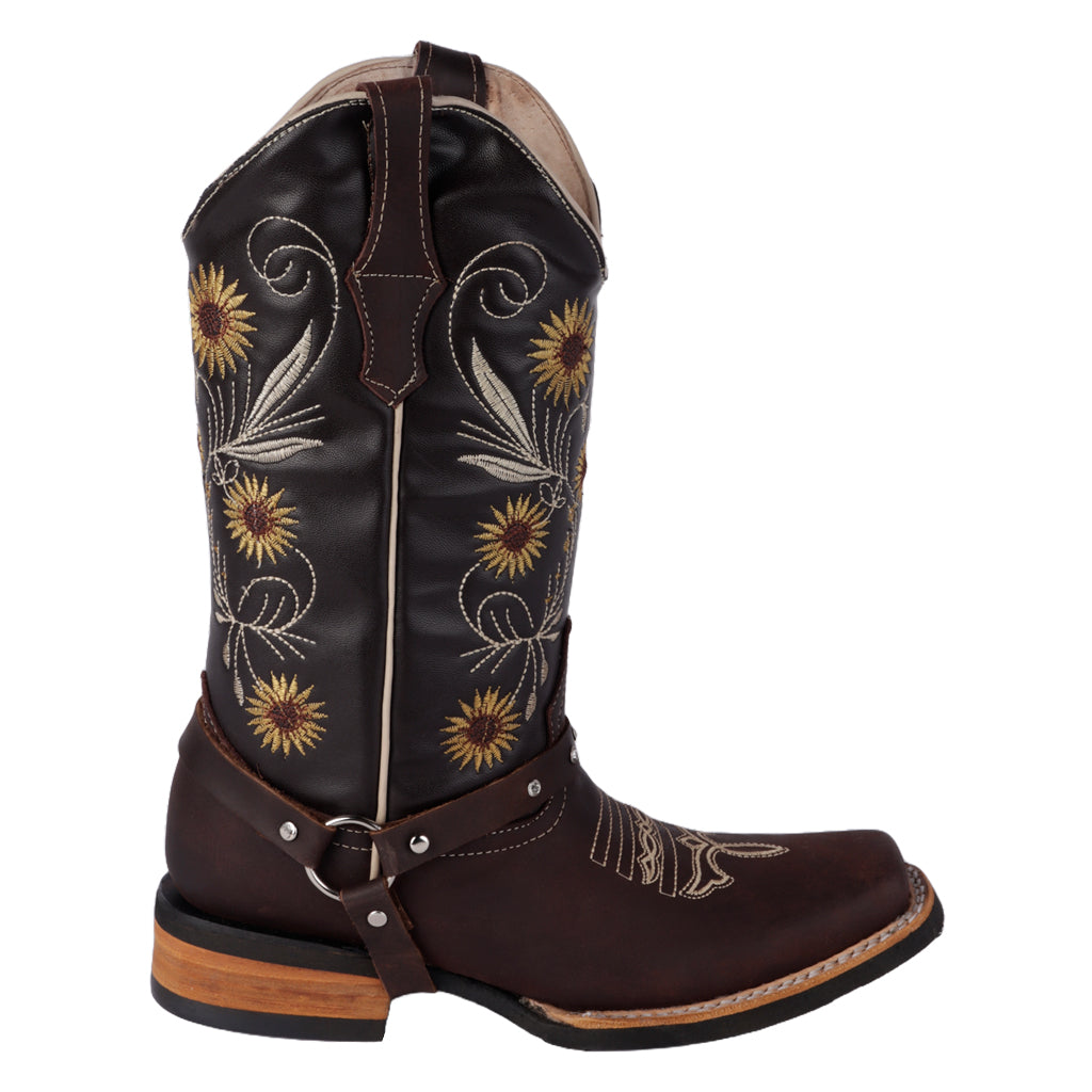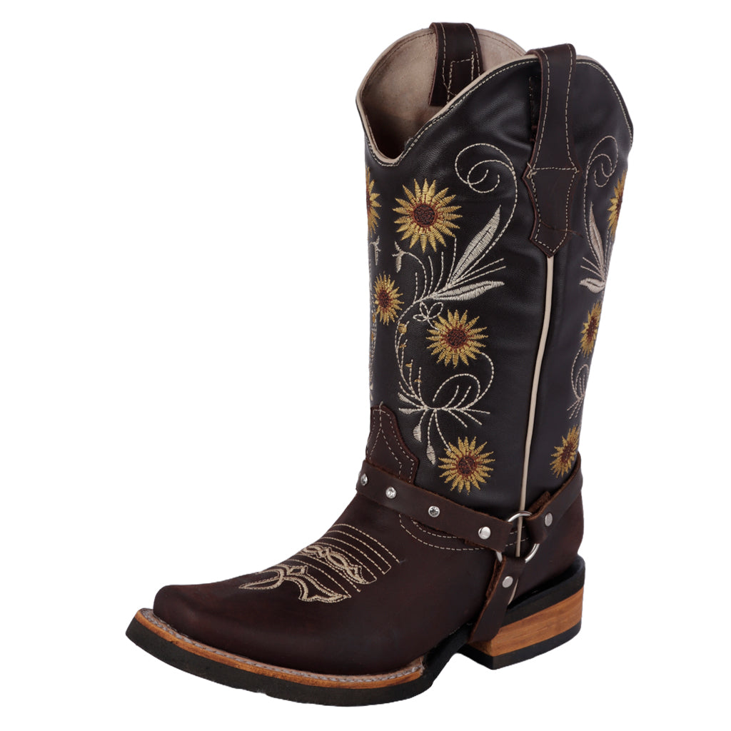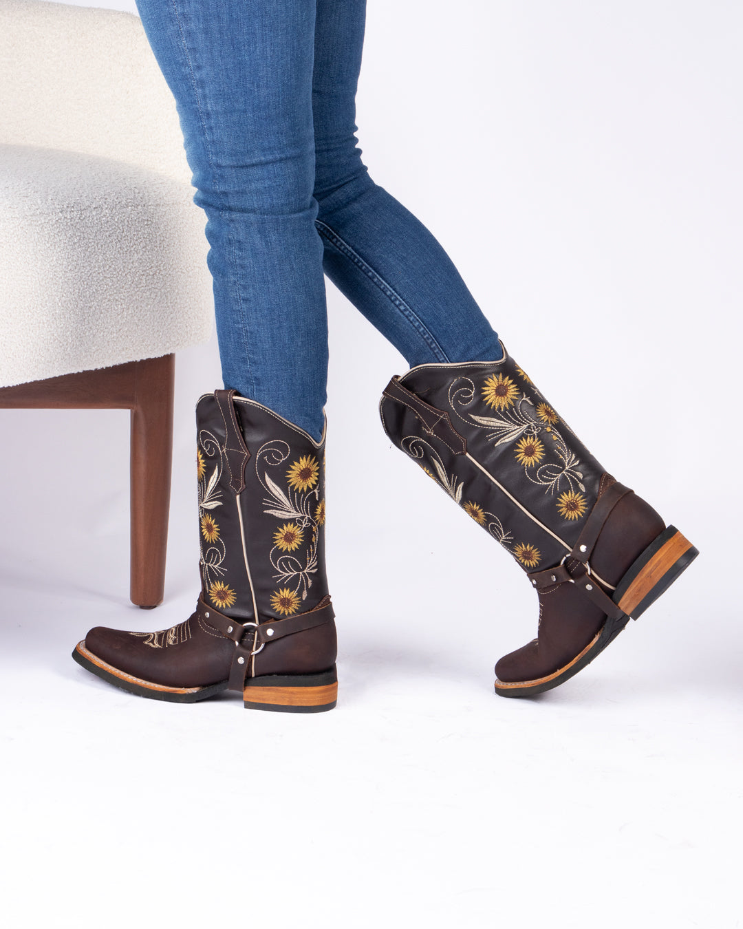 Tu lado más auténtico merece un par de botas vaqueras. Fratello te ofrece diseños femeninos, cómodos y con un toque western que destaca. Úsalas para caminar con seguridad, bailar o disfrutar de un día casual. ¡Hazlas tuyas y luce espectacular esta temporada! Fratello bota vaquera para mujer, en color chocolate, modelo elaborado en piel, tubo de 29 cm de altura, y 38 cm de circunferencia, cuenta con bordado de flores, tipo de cierre slip on, suela sintética de hule, cuenta con tacón de bloque, con un alto de 4 cm forro porcino, tallas disponibles 22/26 incluyendo medias tallas, modelo con horma normal (talla fiel), te sugerimos adquirir talla habitual. Haz que cada paso cuente con Zapatería Fratello, calzado 100% mexicano. Ponte zapatos, no límites. Compra los tuyos ahora.