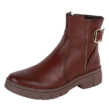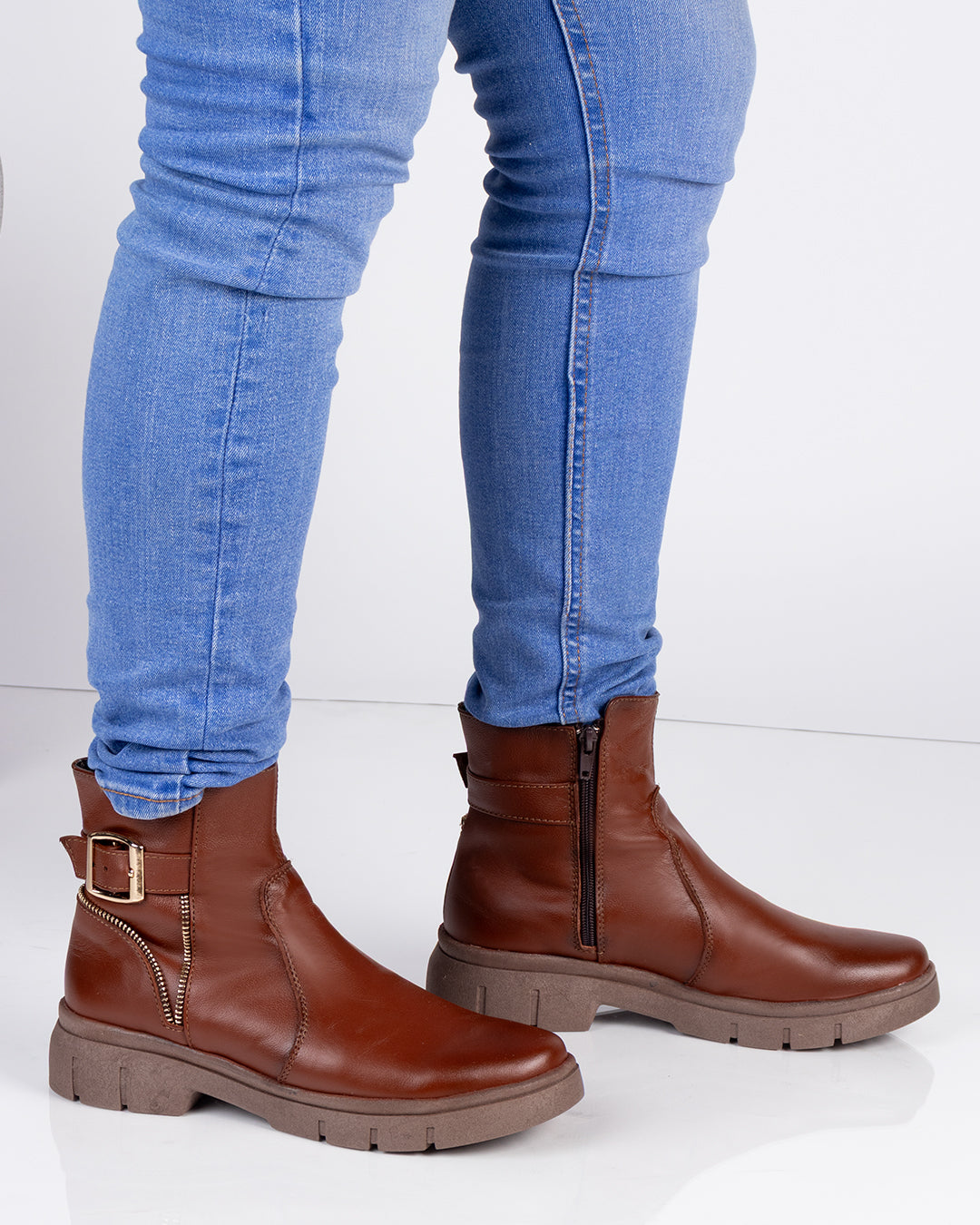 Los botines Fratello son el aliado ideal para un look moderno y sofisticado. Con detalles elegantes y una silueta versátil, se adaptan a cualquier ocasión. ¡Compra en línea y luce impecable con Fratello! Fratello botines para mujer, diseño en color café, elaborado en material piel genuina, diseño de tubo con hebilla y cremallera color oro decorativas, tubo de 13 cm de alto y 27 cm de circunferencia, tipo de cierre con cremallera en lateral interno, suela sintética, cuenta con tacón ancho, con un alto de 4 cm, forro textil, tallas disponibles 22/26 incluyendo medias tallas, modelo con horma normal (talla fiel), te sugerimos adquirir talla habitual. Haz que cada paso cuente con Zapatería Fratello, calzado 100% mexicano. Ponte zapatos, no límites. Compra los tuyos ahora.