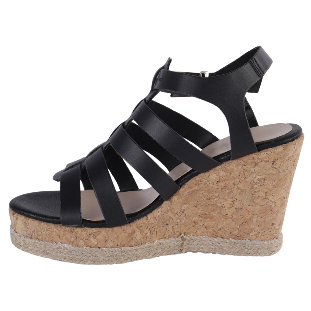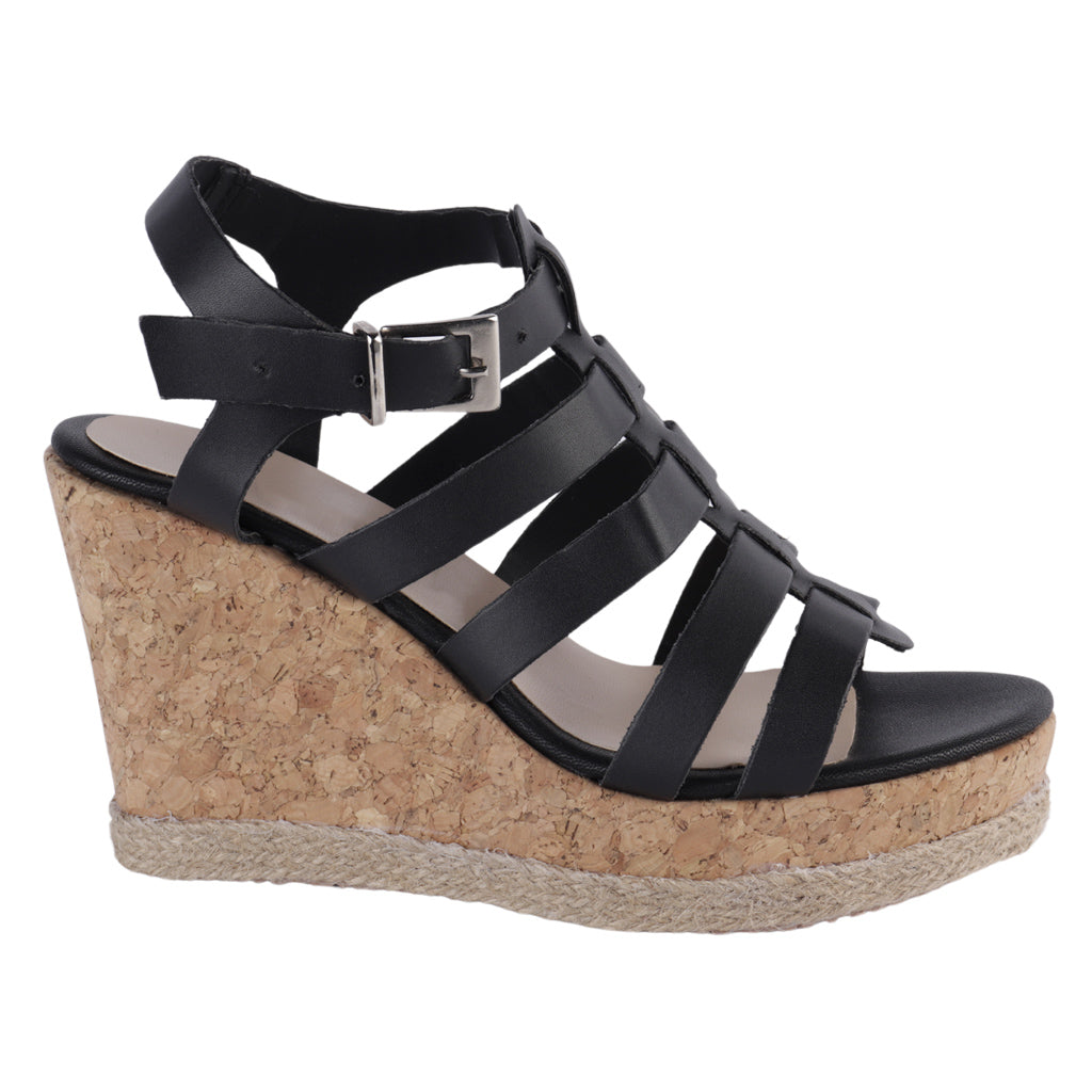 Eleva tu estilo esta temporada con estas sandalias de plataforma, ideales para la primavera-verano. Su diseño versátil combina a la perfección con vestidos, faldas o pantalones cortos. Disfruta de la altura y la comodidad en cada paso, perfectas para tus días de verano. ¡Cómpralas hoy en Zapatería Fratello y añade un toque chic a tu guardarropa! Fratello sandalia de plataforma moderna para mujer, modelo en color negro, elaborado en material sintético sicilia, estilo gladiador, tipo de cierre de pulsera con hebilla color plata, suela de plataforma sintética tipo corcho y yute, con un alto de 9.5 cm, forro y plantilla sintético, tallas disponibles 23/26 incluyendo medias tallas, modelo con horma normal (talla fiel), te sugerimos adquirir talla habitual. Haz que cada paso cuente con Zapatería Fratello, calzado 100% mexicano. Ponte zapatos, no límites. Compra los tuyos ahora.