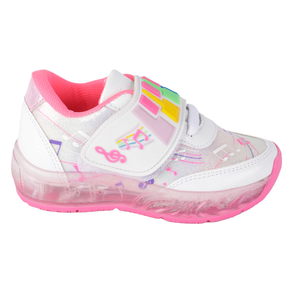 Fáciles de llevar, imposibles de ignorar. El tenis deportivo Fratello te ofrecen una opción estilizada, ligera y moderna para caminar con seguridad y estilo. ¡Haz clic y añade un básico infalible! Fratello tenis casual para niña, en color blanco rosa, modelo elaborado en textil con diseño de notas musicales, tipo de cierre con gancho y bucle, suela sintética de hule, cuenta con suela plana, con un alto de 3 cm forro porcino, tallas disponibles 18.21.5 incluyendo medias tallas, modelo con horma normal (talla fiel), te sugerimos adquirir talla habitual. Haz que cada paso cuente con Zapatería Fratello, calzado 100% mexicano. Ponte zapatos, no límites. Compra los tuyos ahora.