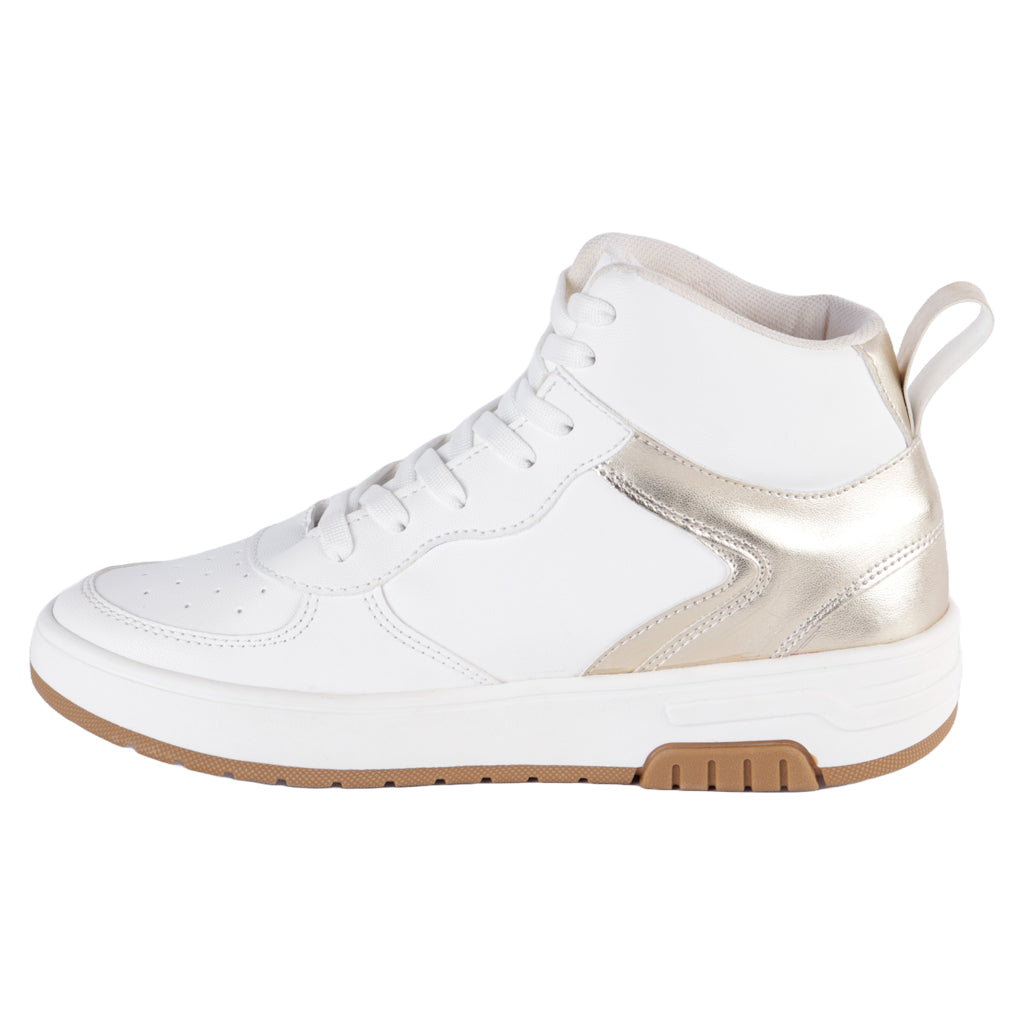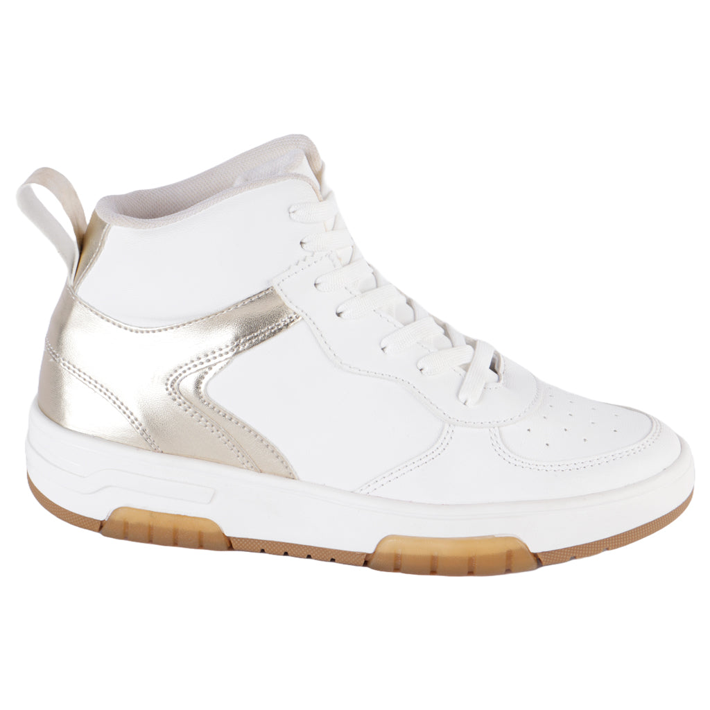 Estos tenis casuales son la opción ideal para quienes buscan un estilo moderno sin renunciar a la comodidad. Perfectos para tus días más activos, su diseño se adapta a cualquier atuendo, desde faldas hasta pantalones. ¡Cómpralos en línea en Zapatería Fratello y dale un toque fresco a tu look! Fratello tenis casuales para mujer, en color blanco en combinación con oro, estilo urbano de bota, modelo elaborado en material sintético, tubo de 9 cm de altura, y 27 cm de circunferencia, cuenta con tipo de ajuste con agujetas al tono, suela sintética con un alto de 4 cm forro y plantilla sintético, tallas disponibles 22/26 no incluye medias tallas, modelo con horma normal (talla fiel), te sugerimos adquirir talla habitual. Haz que cada paso cuente con Zapatería Fratello, calzado 100% mexicano. Ponte zapatos, no límites. Compra los tuyos ahora.