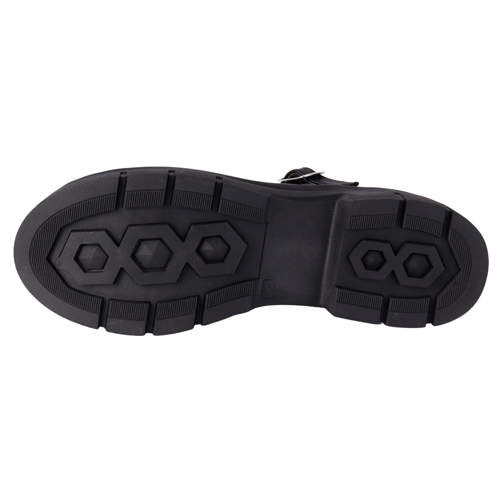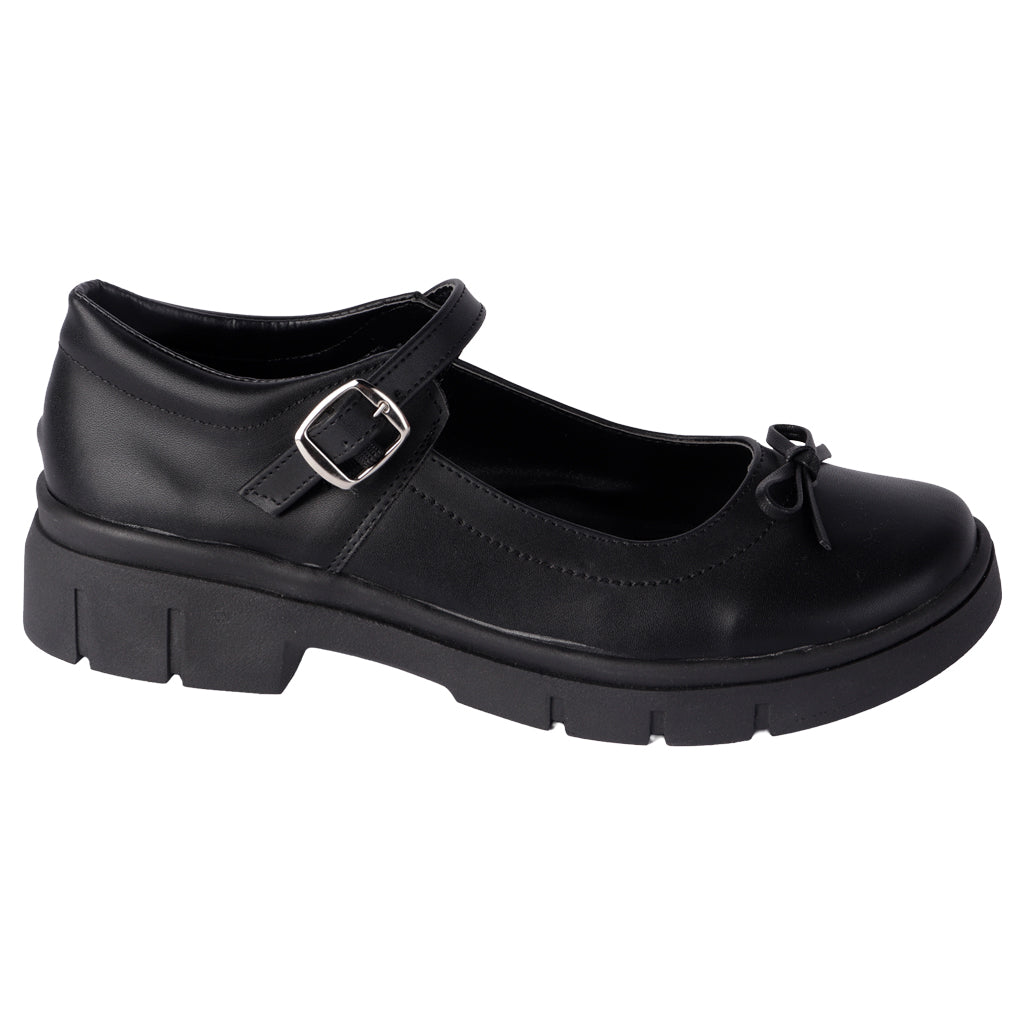 Con su diseño tradicional y materiales duraderos, los zapatos escolares Fratello brindan estabilidad y estilo. Su suela antideslizante y cierre ajustable ofrecen seguridad en cada paso. ¡Haz clic y prepárate para un año escolar lleno de buenos pasos! Fratello zapatos escolares para mujer, modelo en color negro, elaborado en material sintético, estilo mary jane, con aplicación en el empeine de moño al tono, tipo de ajuste de pulsera con hebilla color plata, suela sintética antideslizante, suela con un alto de 4 cm, forro sintético, tallas disponibles 22/26 incluyendo medias tallas, modelo con horma normal, adquirir talla habitual. Haz que cada paso cuente con Zapatería Fratello, calzado 100% mexicano. Ponte zapatos, no límites. Compra los tuyos ahora.